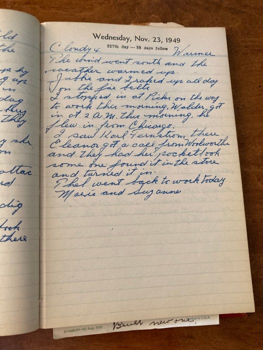 Eleanor got a call from Woolworth’s and they had her pocketbook. Some one found it in the store and turned it in.