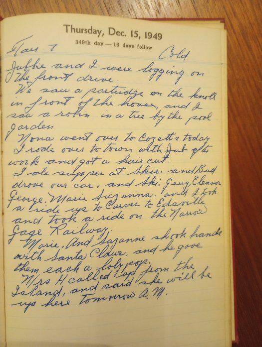 I ate supper at Ski’s, and Bud drove our car and Ski, Gary, Eleanor, George, Marie, Suzanne, and I took a ride up to Carver to Edaville and took a ride on the narrow gauge railway.