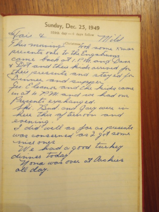 This morning I took some Xmas presents over to the Engstroms. Came back at 1 P.M. and Dave + Dot and their kids arrived for their presents and stayed for dinner and supper.