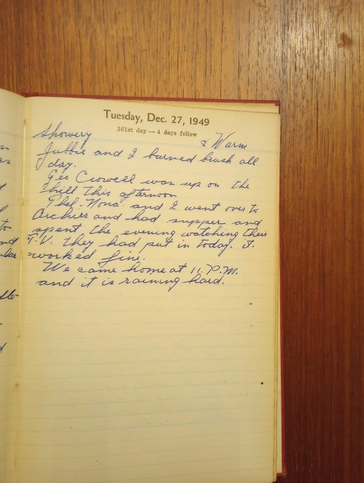 Thel, Nona and I went over to Archie’s and had supper and spent the evening watching their T.V. They had put [it] in today. It worked fine.