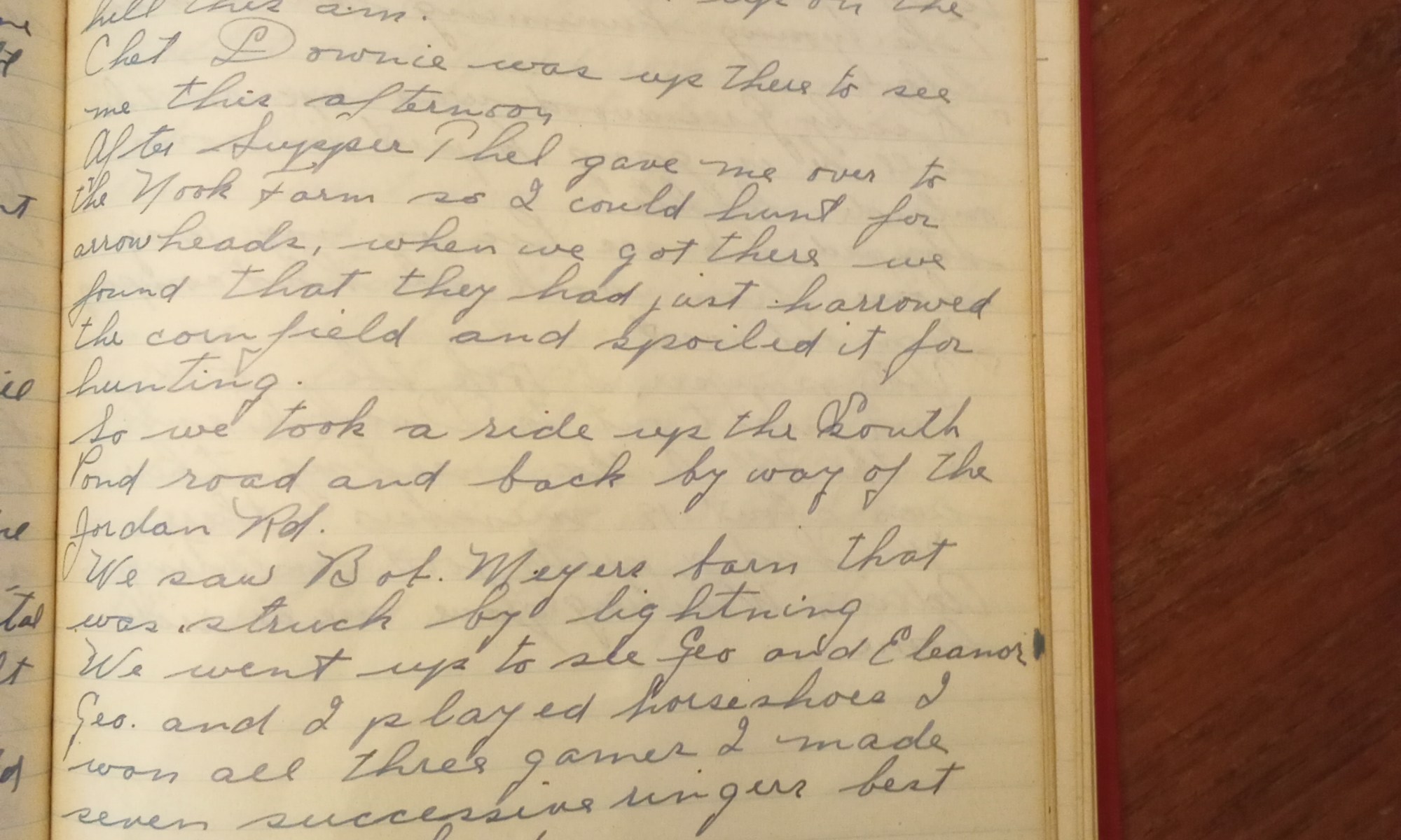267th day- 158 days follow Fair and cooler. Fine day. Mowed lawns all day. Thel and Cozette were up on the hill this A.M. Chet Downie was up there to see me this afternoon. After supper Thel gave me (a ride) over to Nook Farm so I could hunt for arrowheads. When we got there …