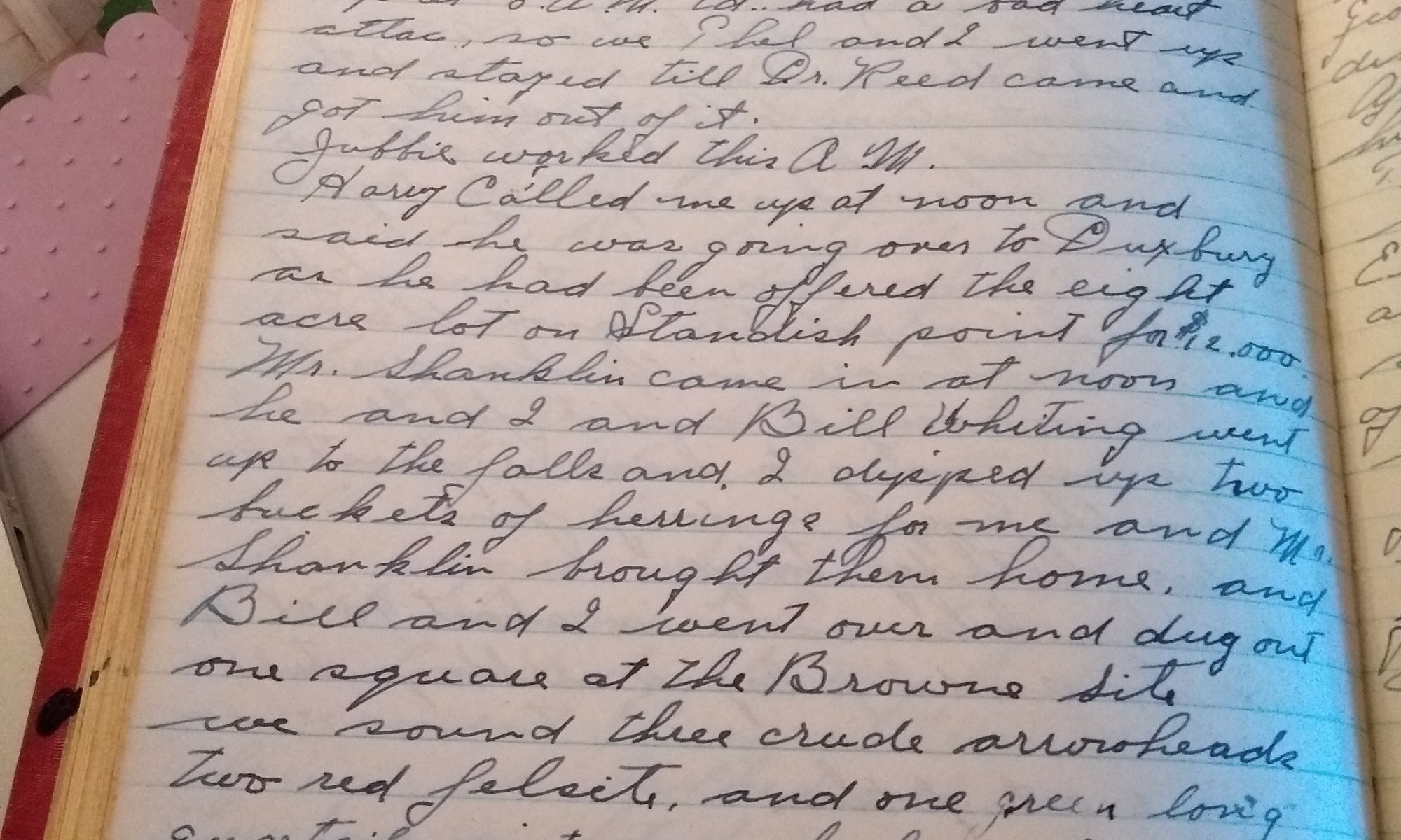 123rd day- 242 days follow Fair and very cool The plumber was up on the hill this morning. Harry left for Sandwich at 8-5 A.M. Ski and Jubbie and some more of the kids went down to Buzzads Bay and bowled. Ski had the high score. I saw a chicwink (?) a couple of days …