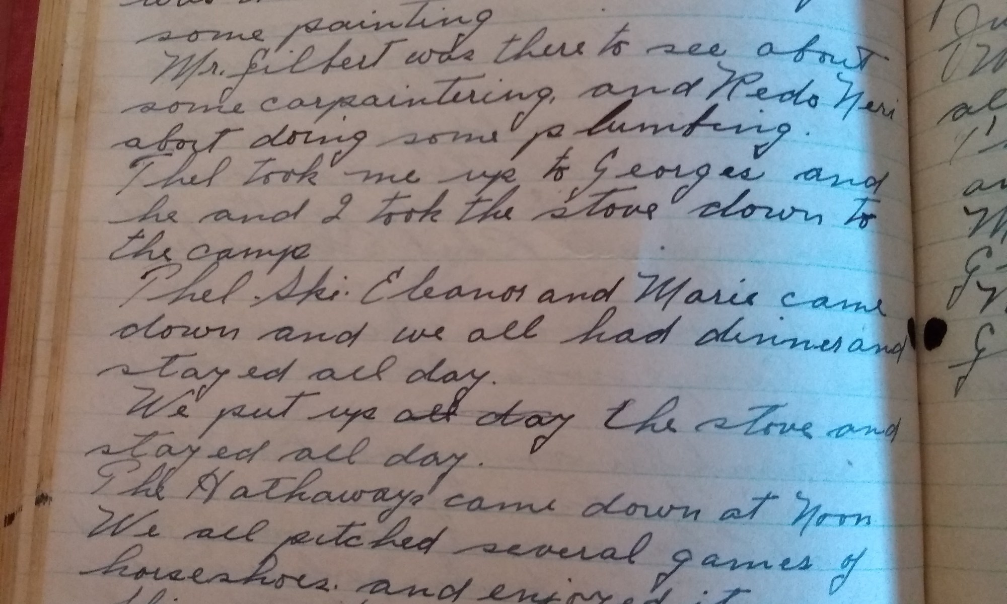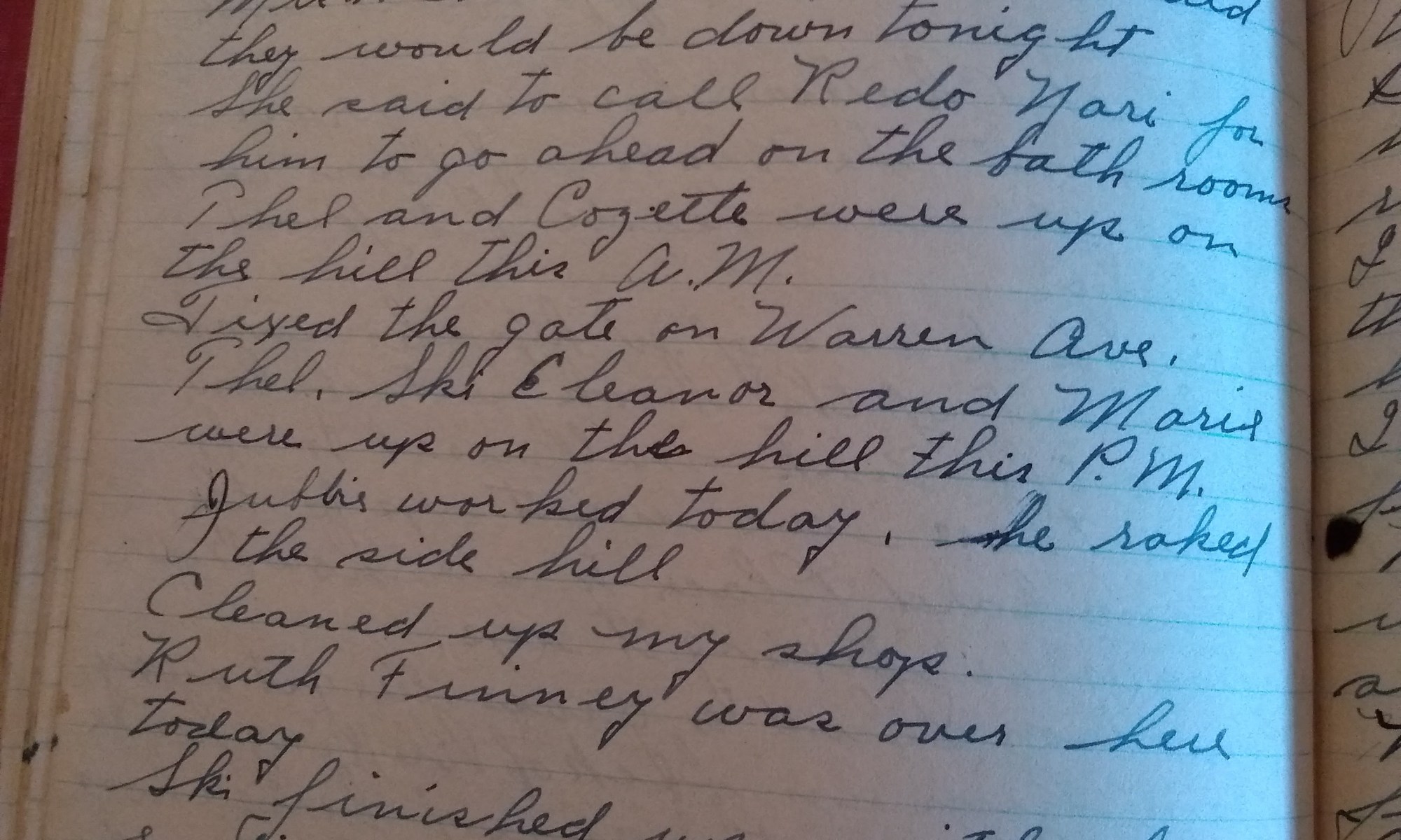 90th day- 275 days follow Fair and cold. Wind No. Went up on the hill and saw all the folks. While I was there Mik Swift was there to see about doing some painting. Mr. Gilbert was there to see about some carpentering and Redo Neri about doing some plumbing. Thel took me up to …