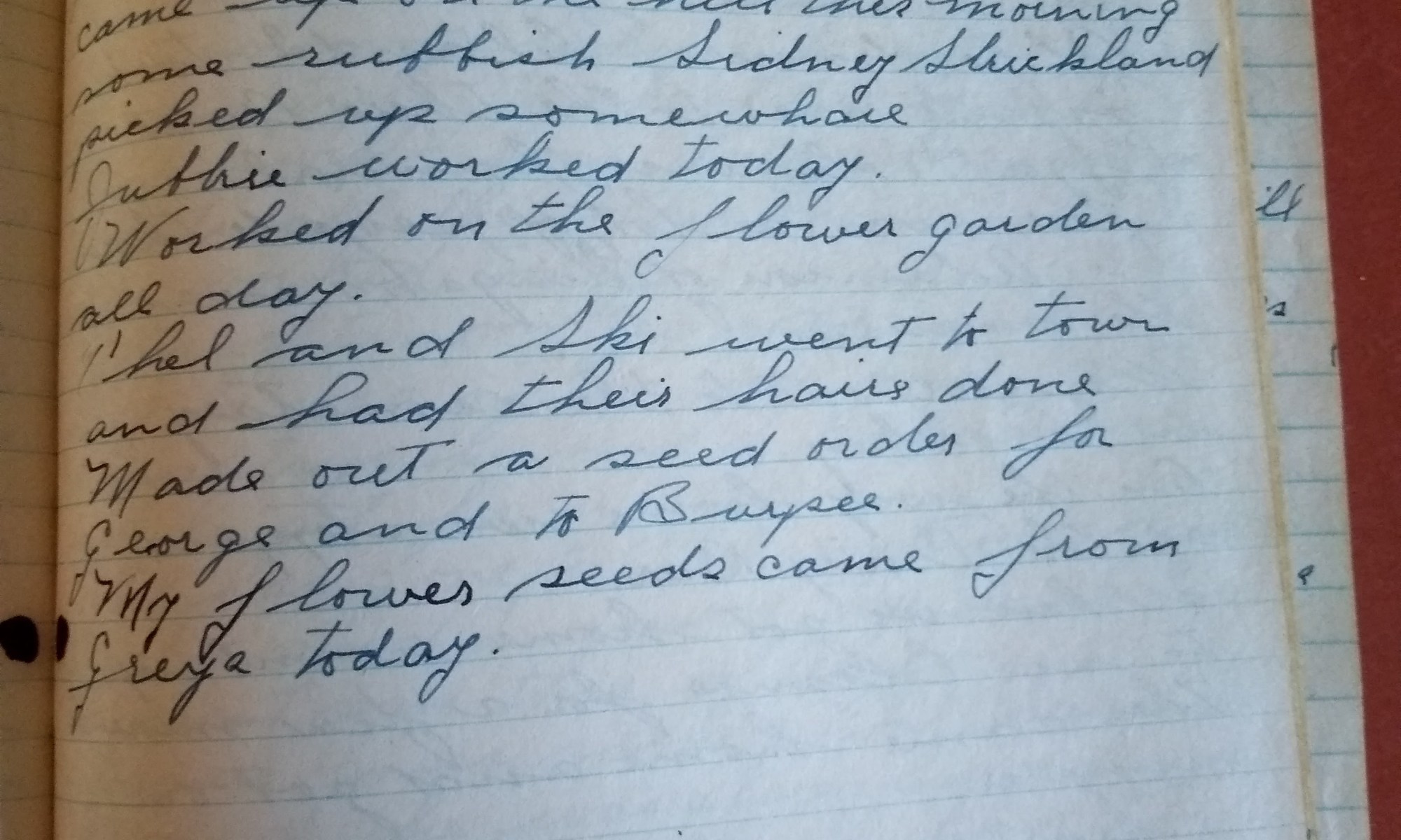 91st day- 274 days follow Partly cloudy and cold wind No. to So. Two truck loads of old junk lumber came up on the hill this morning, some rubbish Sidney Strickland picked up somewhere. Jubbie worked today. Worked on the flower garden all day. Thel and Ski went to town and had their hair done. …
