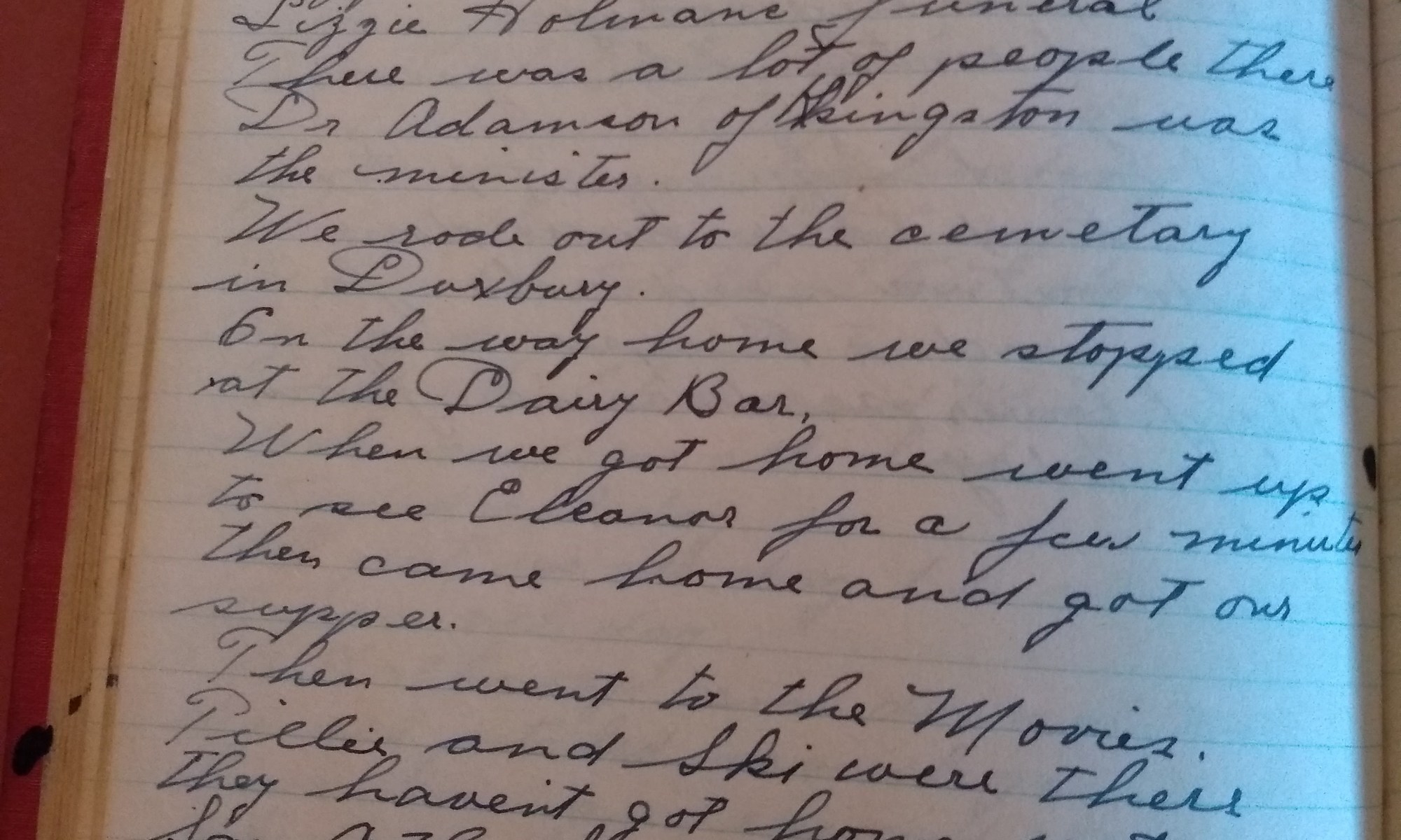 92nd day- 273 days follow Fair and warmer. Wind So. to No. Fixed up the lawn mower for the summer. After dinner Thel and I took Cozette over to their Aunt Lizzie Holmans funeral. There was a lot of people there. Dr. Adamson of Kingston was the minister. We rode out to the cemetery in …