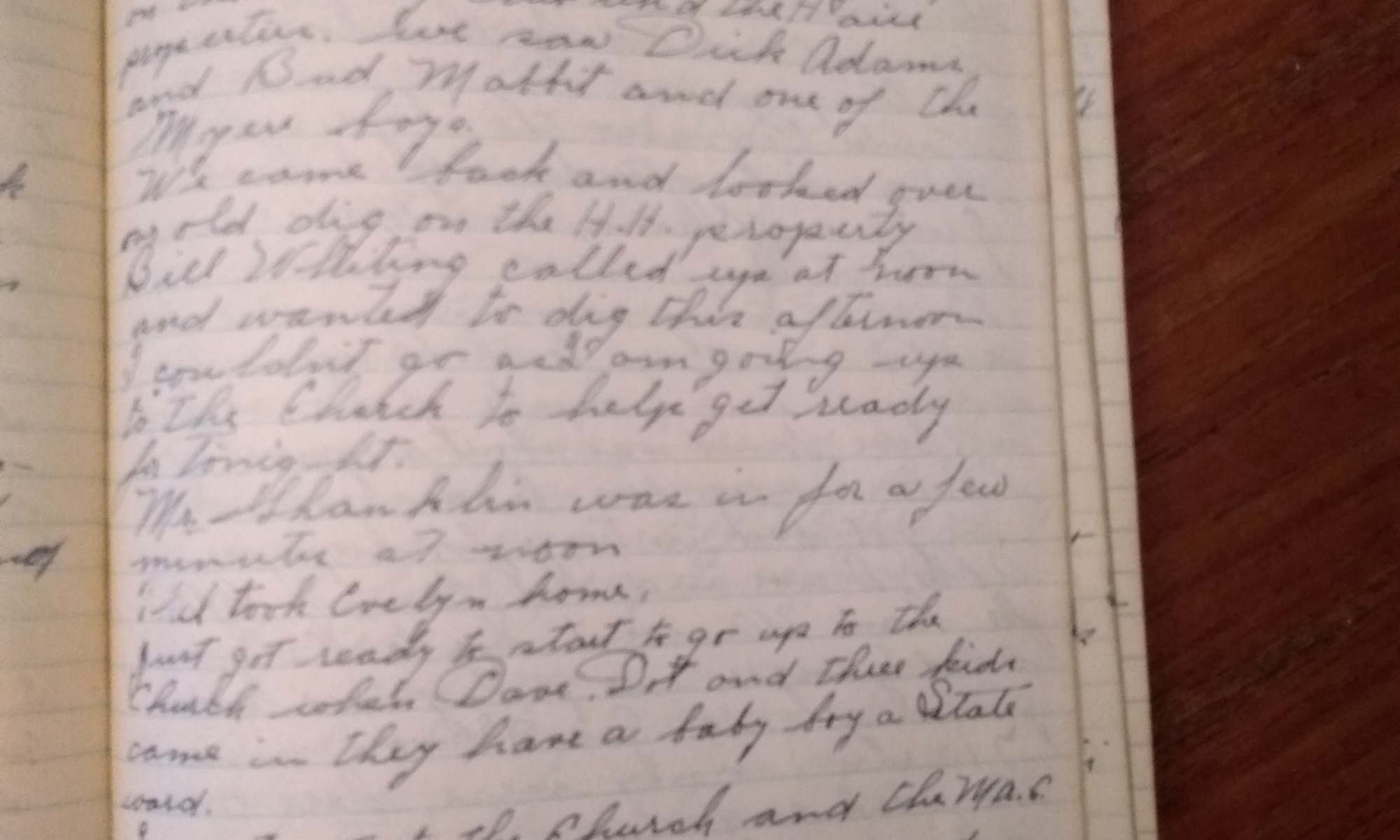 76th day- 289 days follow -Arrowheads- Dave gave me a ride up on the hill this A.M. We saw Mr. H., Mrs. H, and Harry. Mrs. H took Davene thru the house. We went around by the store and got the papers. Walder, Pic and the boys came in for a while after Sunday …