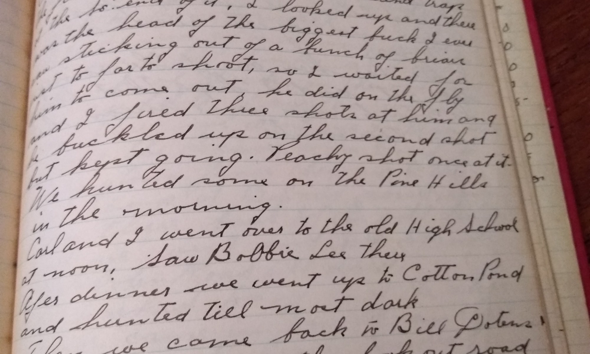 337th day-28 days follow Deer Hunting Carl Bolt picked me up at 7 A.M. and we went up by the golf links round by Whipples and then up by Cotton Pond. Here we ran into a crowd we met last year, so we joined up and drove the section west of the pond. I had …
