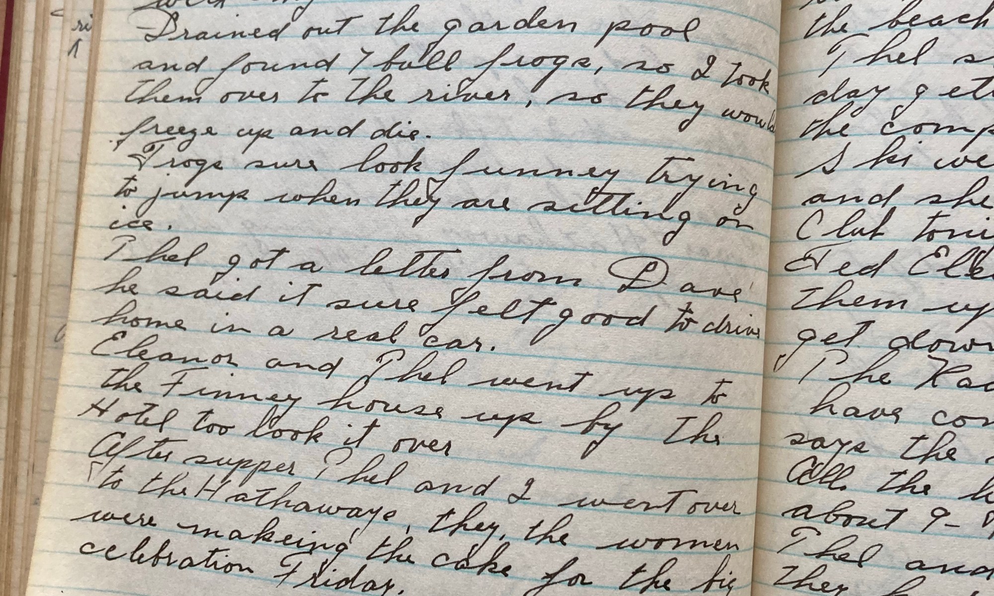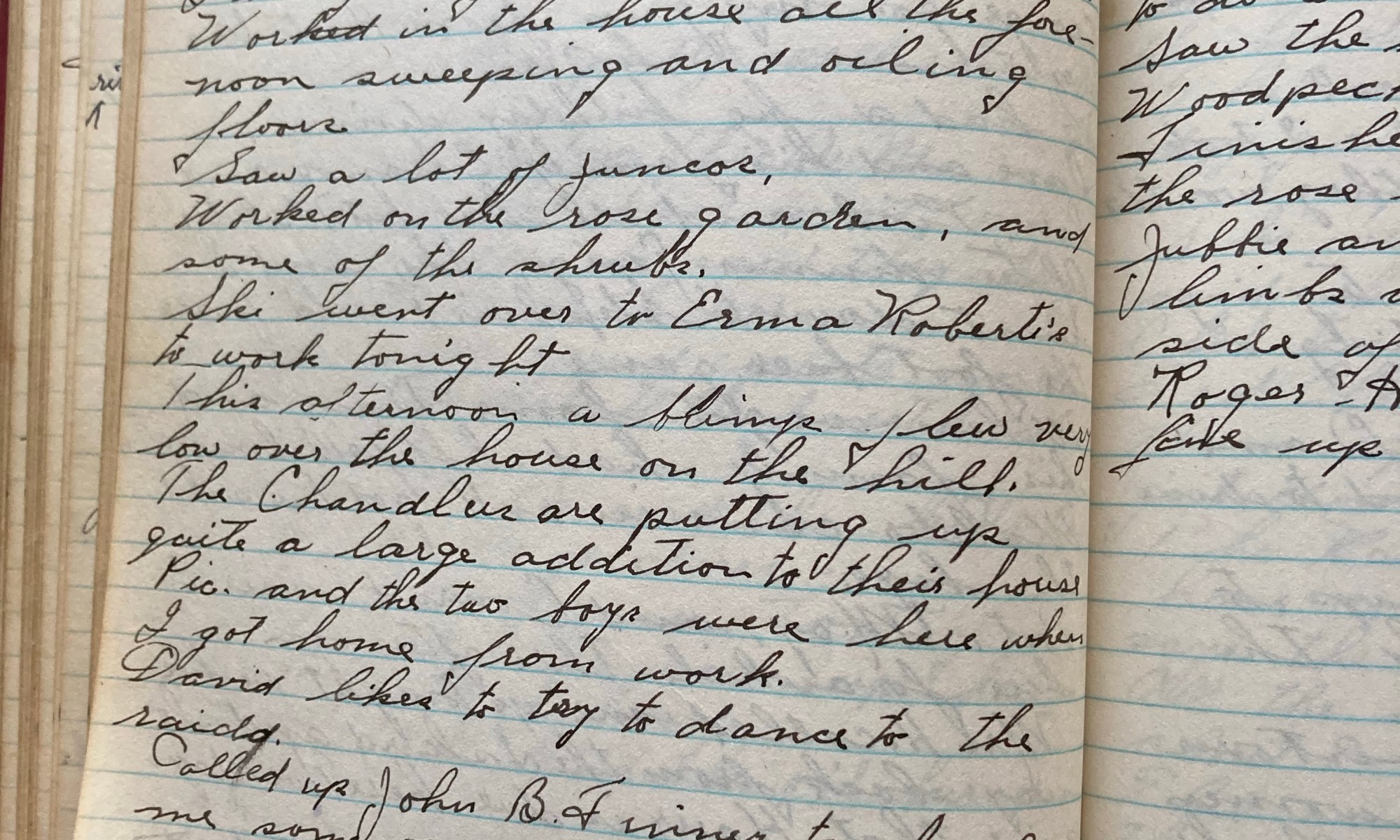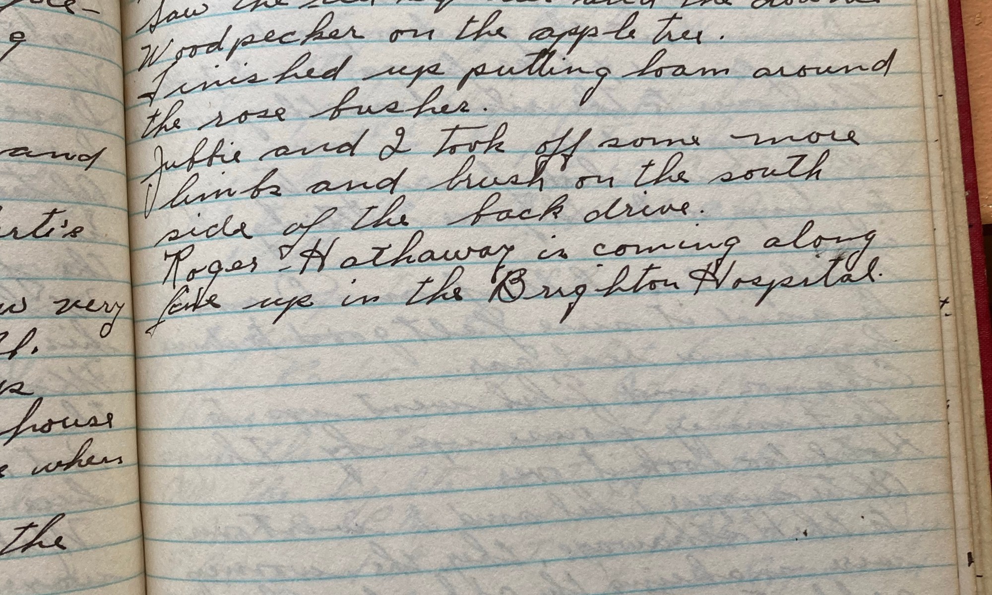 331st day- 34 days follow Fair and not too cold. Wind No. Fred Moon worked today. Thel and Cozette were up on the hill to do a little cleaning. Saw the red squirrel and the downie woodpecker on the apple tree. Finished up putting loam around the rose bushes. Jubbie and I took off some …