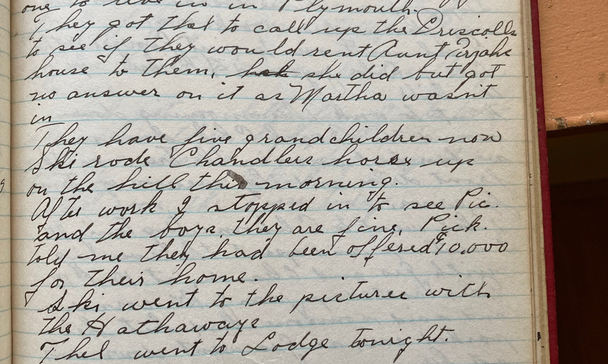 317th day - 48 days to follow Mild and foggy. Fred Moon was up on the hill. Elisha Edlridge and Dot were in here this AM they have sold their house in Dennisport and are looking for one to live in in Plymouth. They got that to call up the Driscolls to see if they …