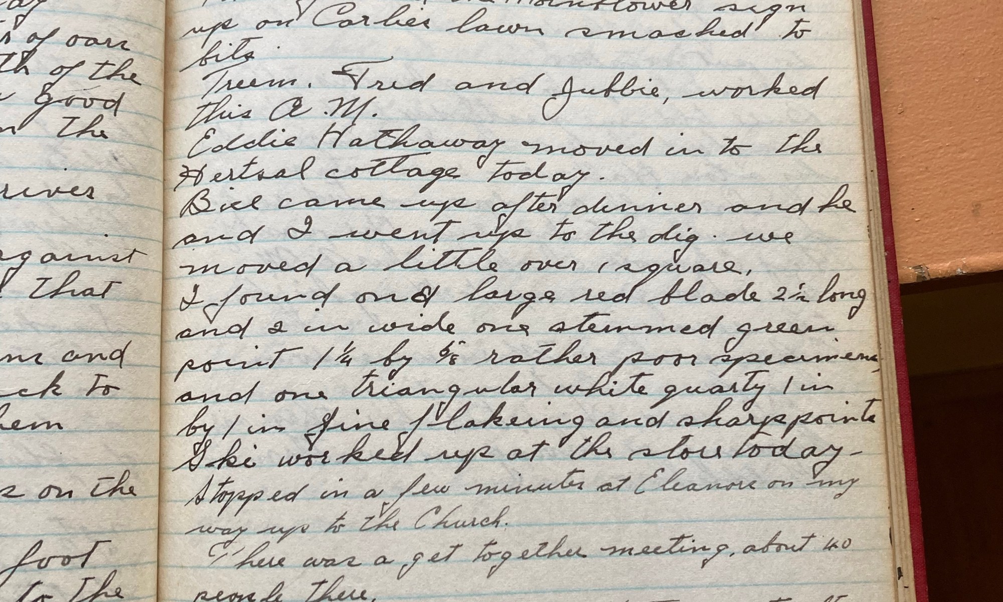 307th day - 58 days to follow Fair and warm, fine day. Thel found the Hornblowers sign up on Carbie’s lawn smashed to bits. Treem, Fred, and Jubbie worked this AM. Eddie Hathaway moved in to the Hertsal cottage today. Bill came up after dinner and he and I went up to the dig. We …