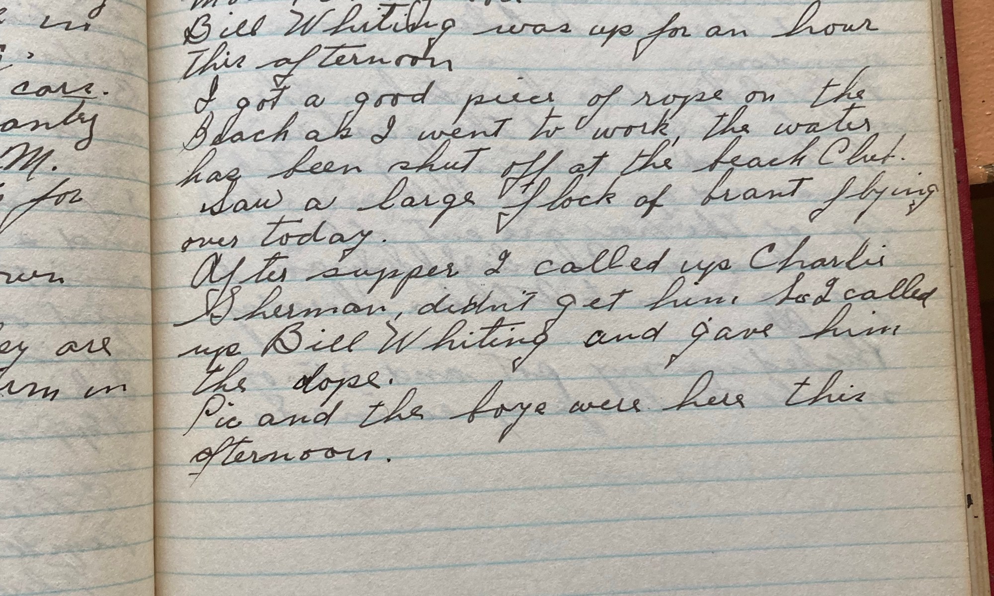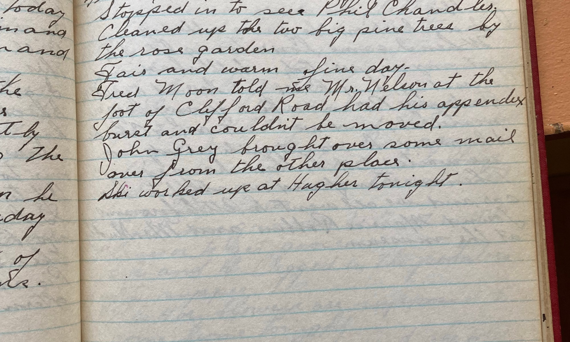 304th day - 61 days to follow The tree men, Fred Moon, and Jubbie worked today. Got a letter from Jerry he said I must have taken the wrong top coat and I had. Saw Mr H this am he was on his way to Martha’s Vineyard. Went in to see Mr Dutton, he gave …