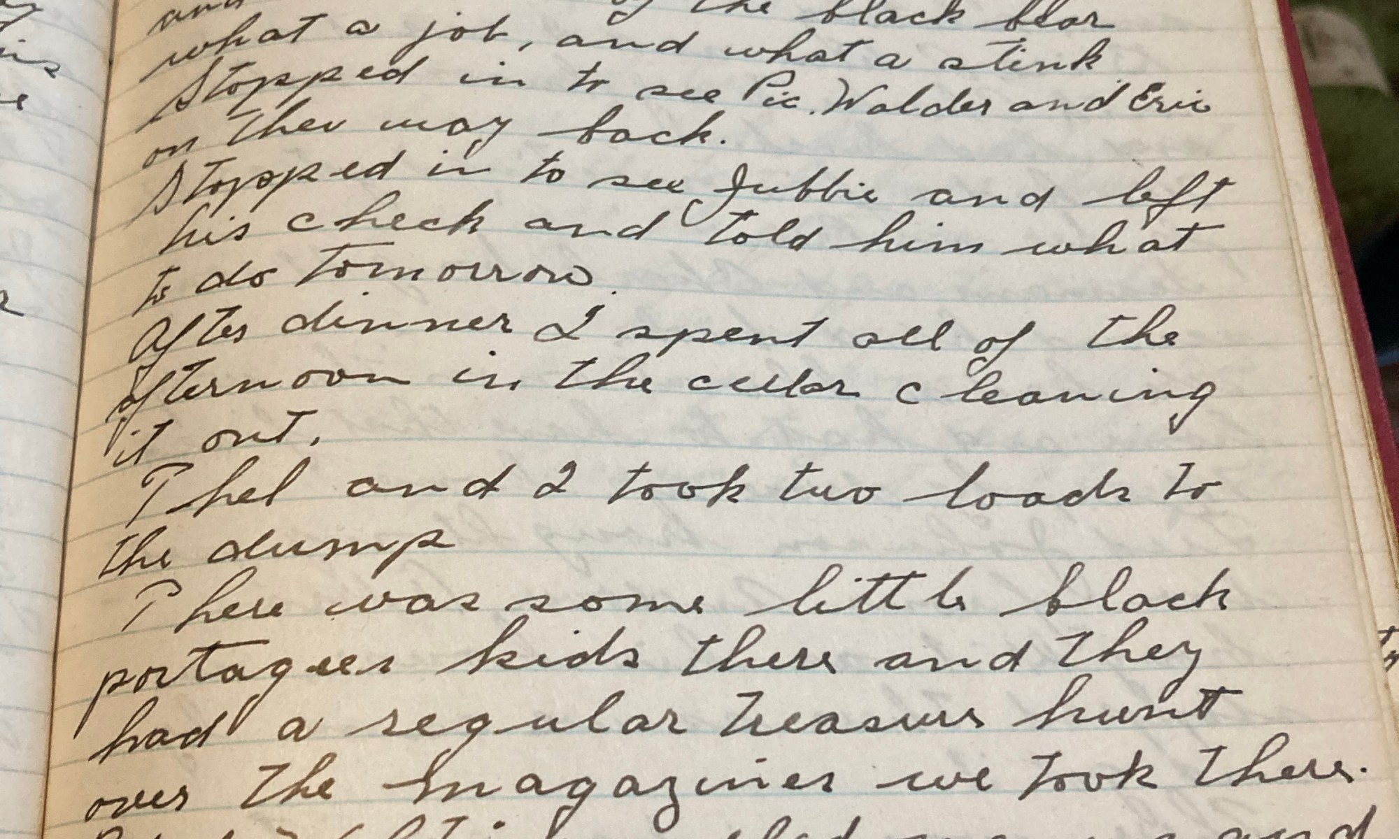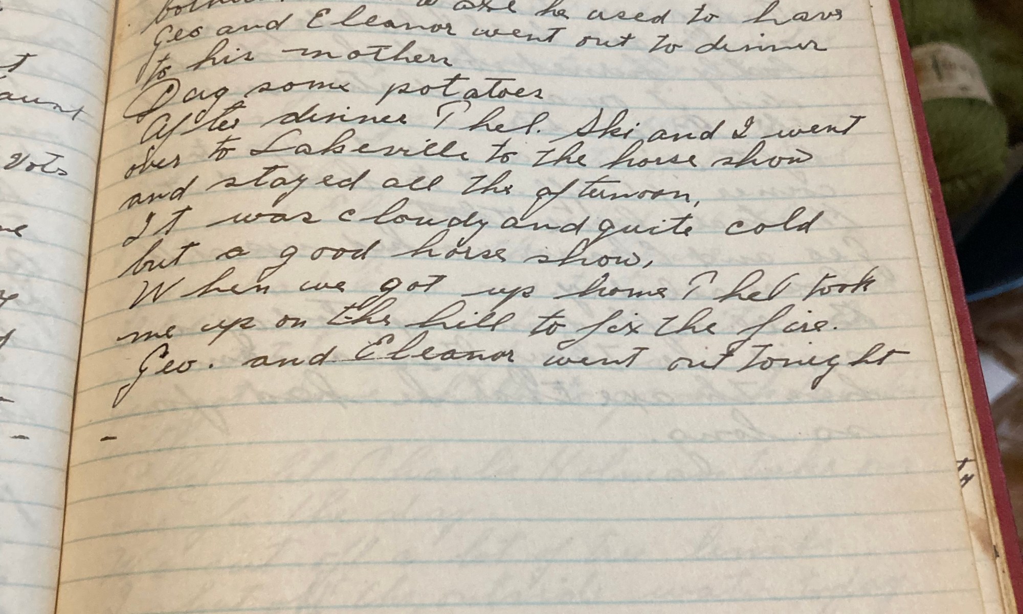 287th day - 78 days to follow Fair and cool Went up on the hill and did the chores. Bill came in this AM he was bothered about a axe he used to have, Geo and Eleanor went out to dinner to his mothers. Dug some potatoes. After dinner Thel, Ski, and I went over …