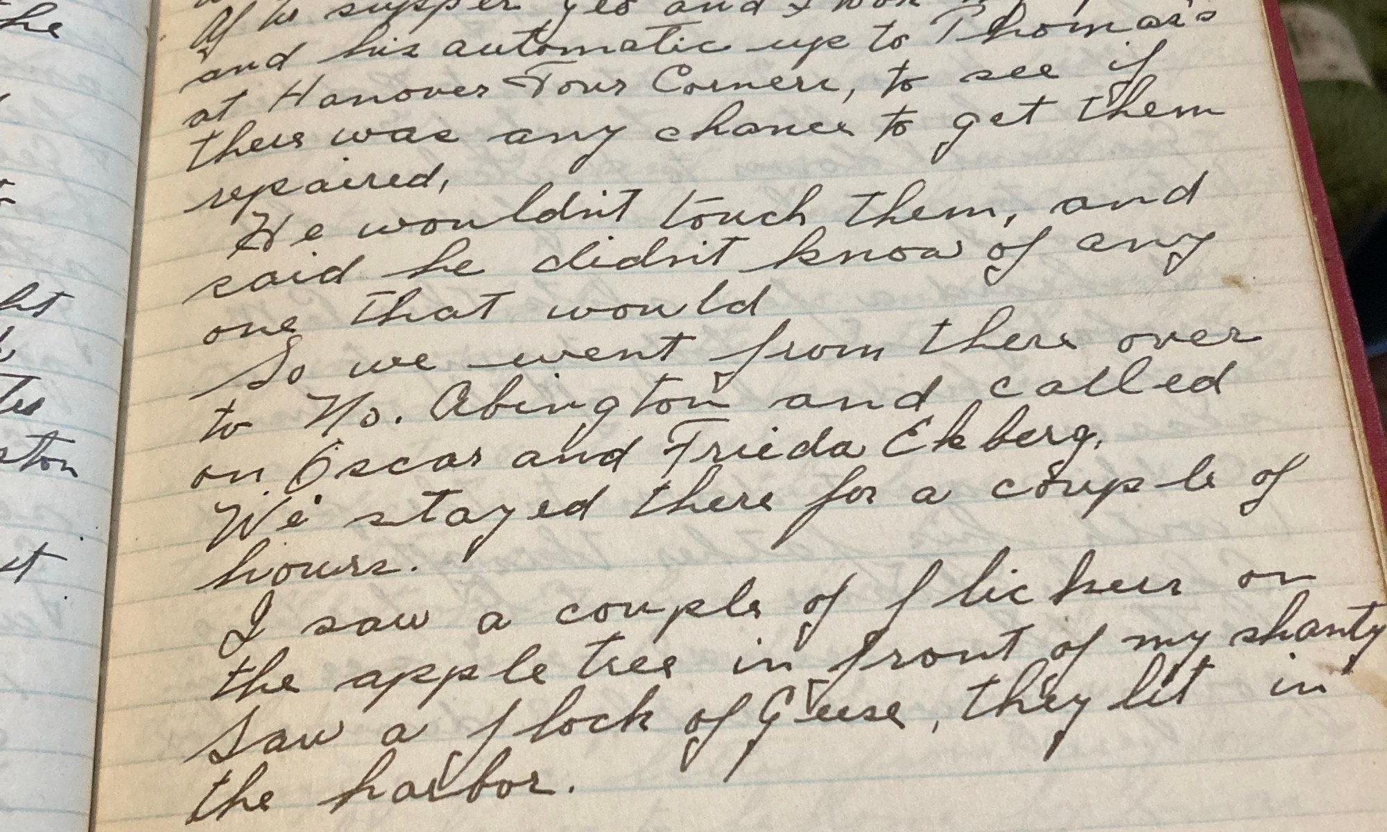 291st day - 74 days to follow Geese Fair and clear like summer Jubbie and I worked on the trees today. Hank has to stay in the hospital a week from Friday. After supper Geo and I took my repeater and his automatic up to THomas’s at Hanover Four Corners to see if there was …