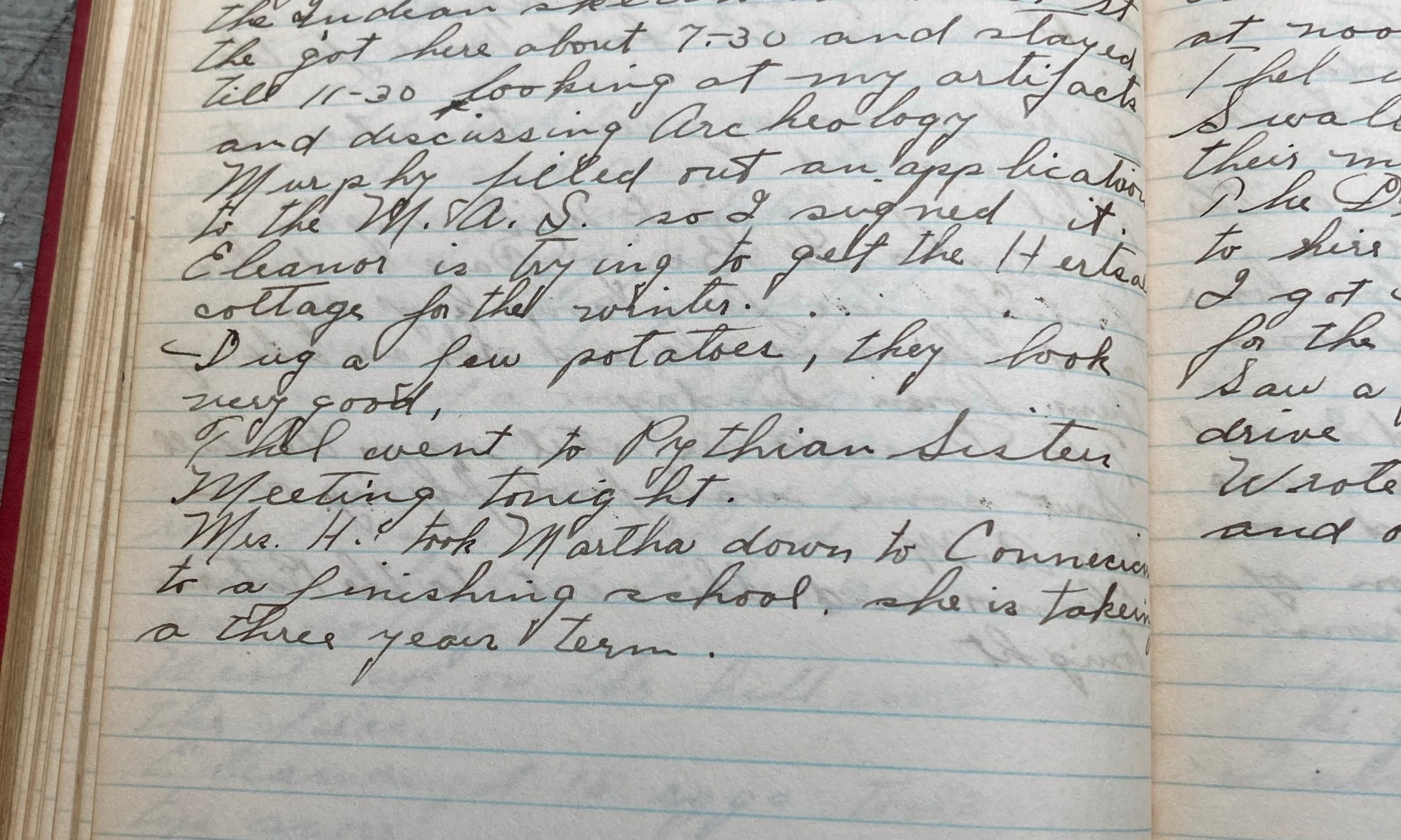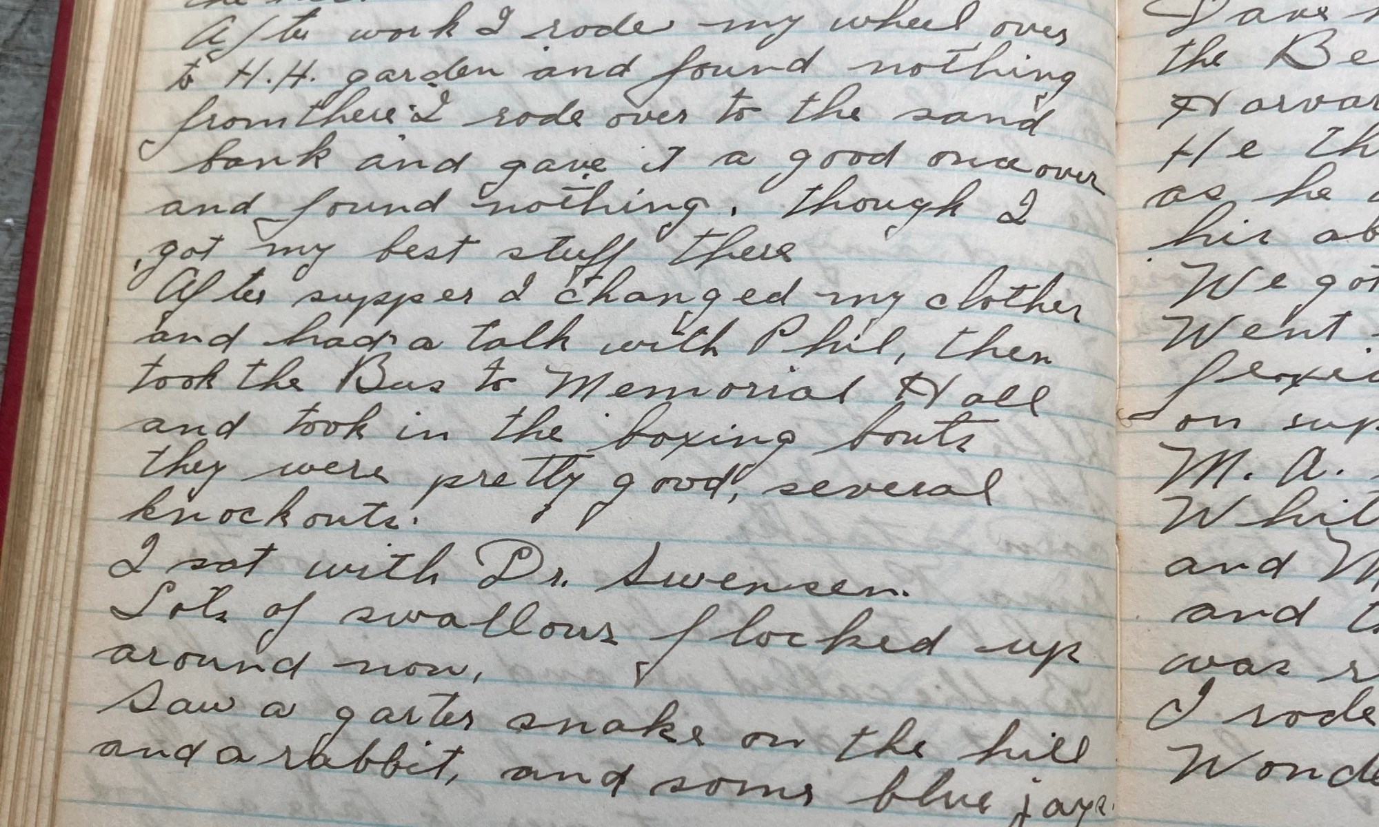 268th day - 97 days to follow Fair and hot. Jubbie worked today. After supper Charlie Sherman came up with Mr Murphy of Winter St, the fellow that recently dug up the Indian skeleton on Winter St. THey got here about 7-3- and stayed till 11-30 looking at my artifacts and discussing Archeology. Murphy filled …
