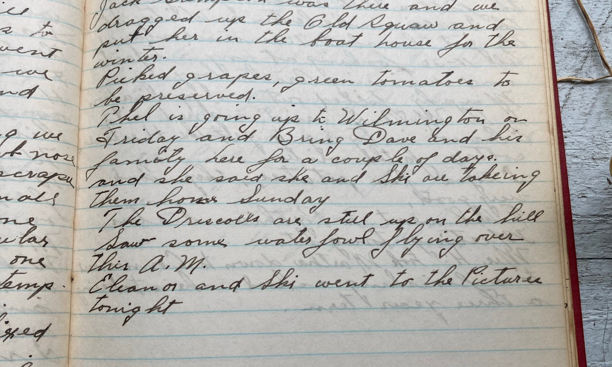 267th day - 98 days to follow Cloudy and warm. This morning I went over to Jabez Corner with Mrs H and Martha, we went down to the boat house and we dragged up the Old Squaw and put her in the boat house for the winter. Picked grapes, green tomatoes to be preserved. Thel …