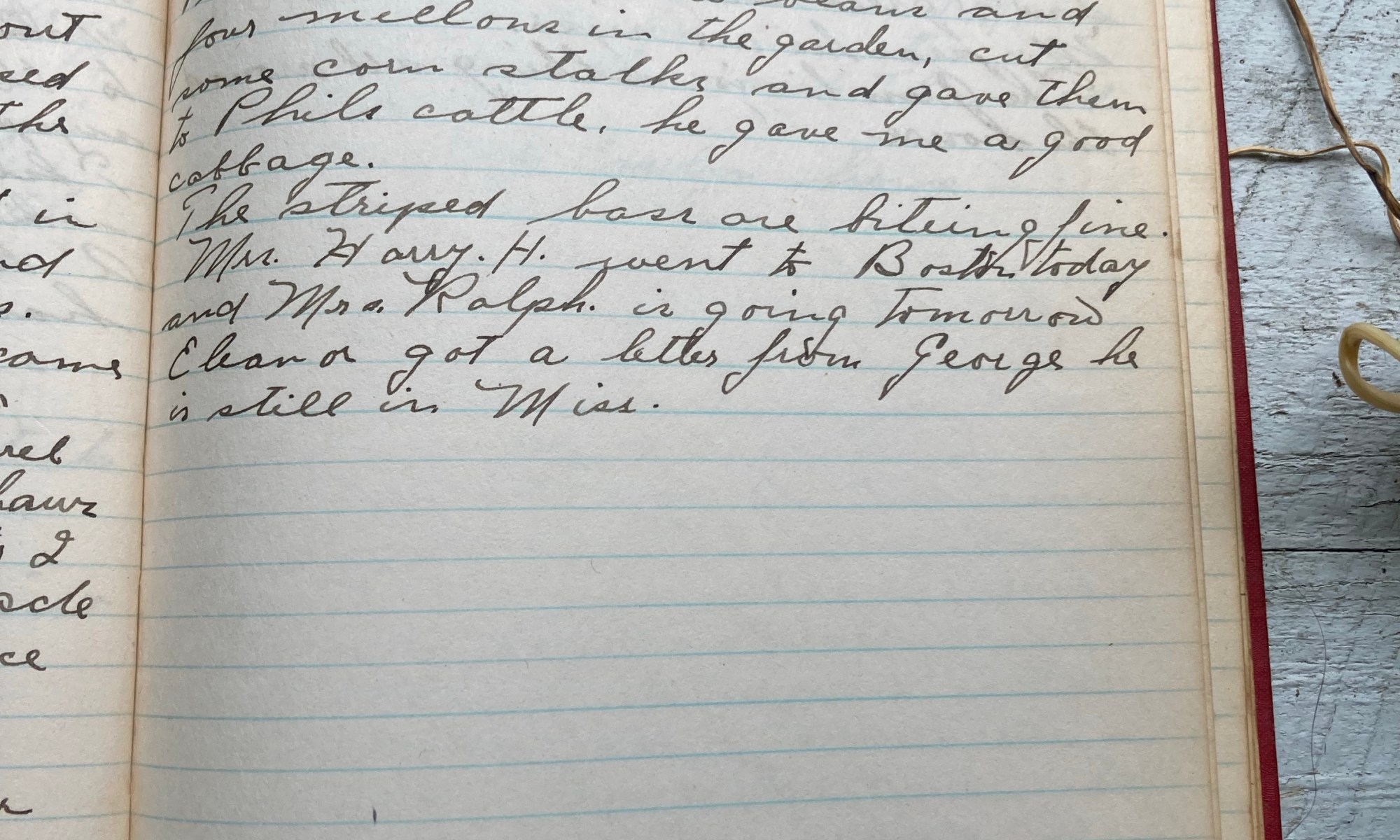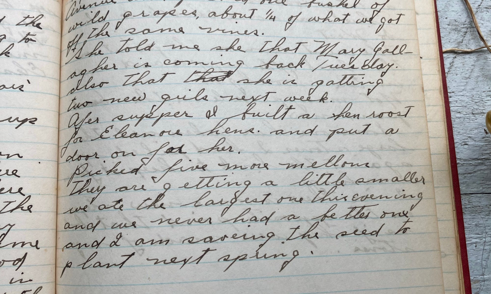 255th day - 110 days to follow Partly cloudy and warm. We had a real hard thunderstorm at 1-30 AM this morning. Martha Driscoll was here at noon. Took one of my largest musk mellons up to give Mrs Driscoll and Martha she gave me 3 cigars in return. Martha came down and thanked me …