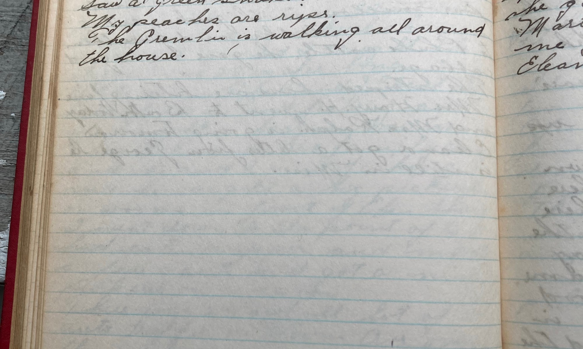 254th day - 111 days to follow Fair partly cloudy. Hot. Mrs H went to Boston this am. Stopped in to see David and gave him a mellon, he said Oh Boy! He sure likes them. Saw a green snake on the hill. My peaches are ripe. The gremlin is walking all around the house.