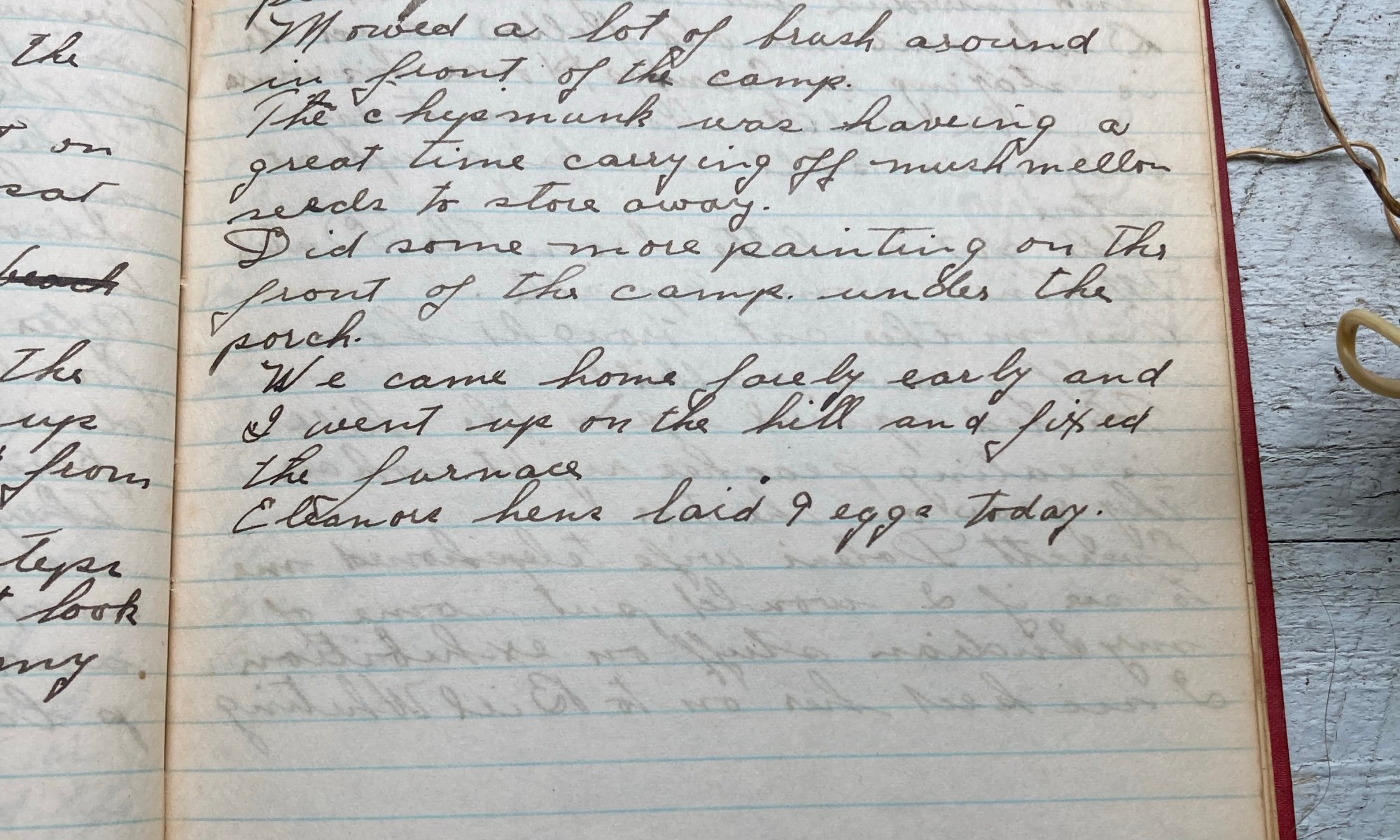 259th day - 106 days to follow Fair and cool this AM. We had a shower last night. Thel and I went over to Triangle Pond and I lost off a whale of a pickerel. Mowed a lot of brush around in front of the camp. The chipmunk was having a great time carrying off …