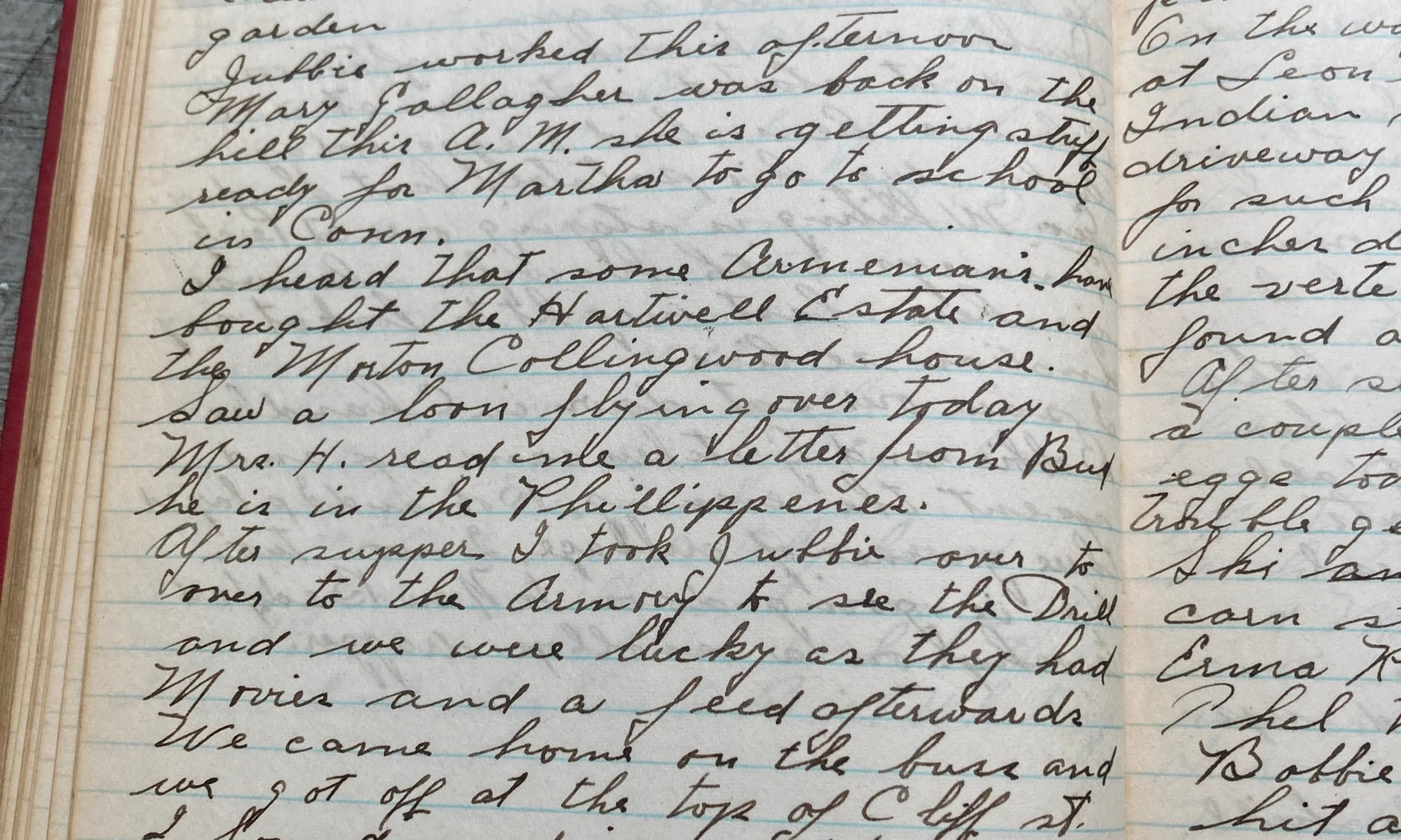 262nd day - 103 days to follow Fair and warm. Worked some in the grove, cleaned up some stuff out of the attic. Jubbie worked this afternoon. Mary Gallagher was back on the hill this AM, she is getting stuff ready for Martha to go to school in Cnn. I heard that some Armenians have …