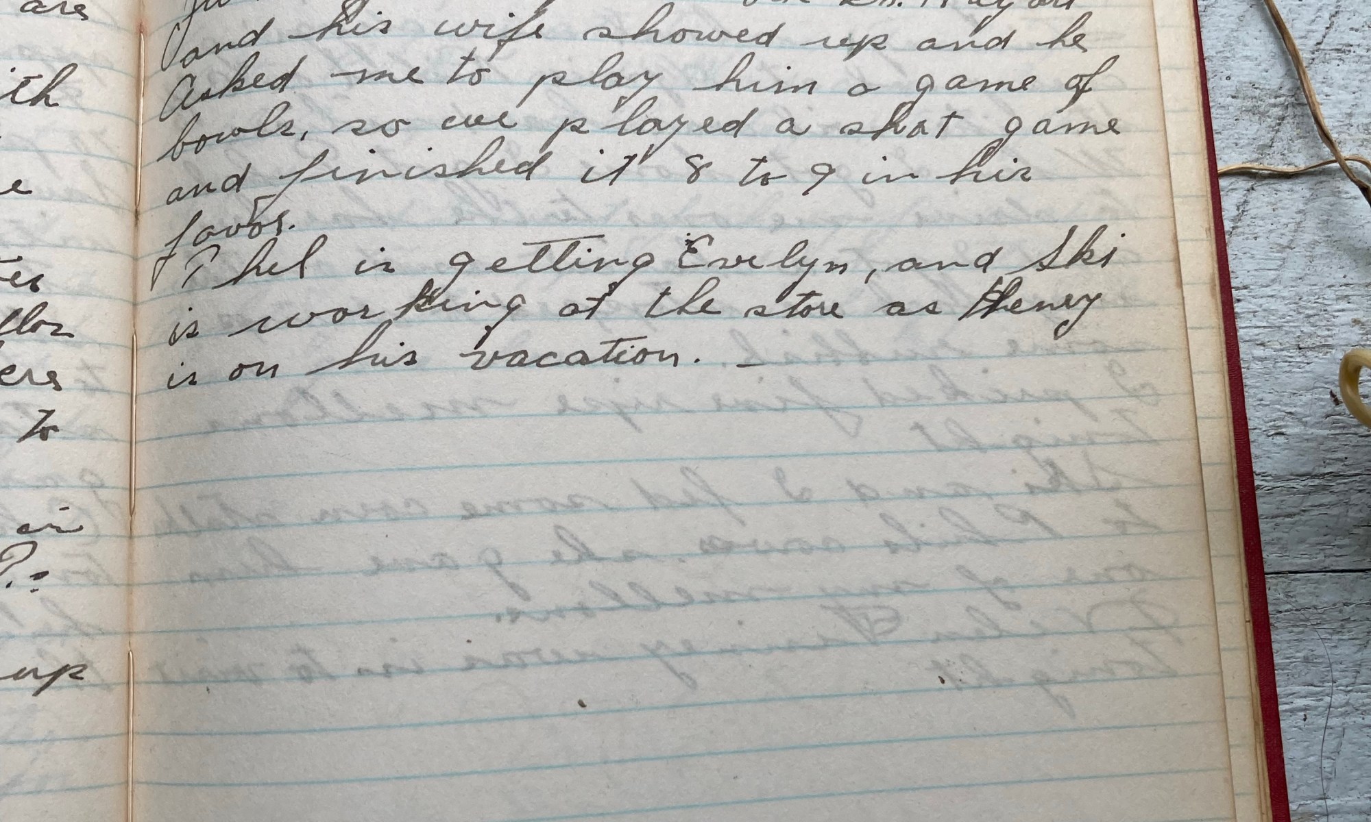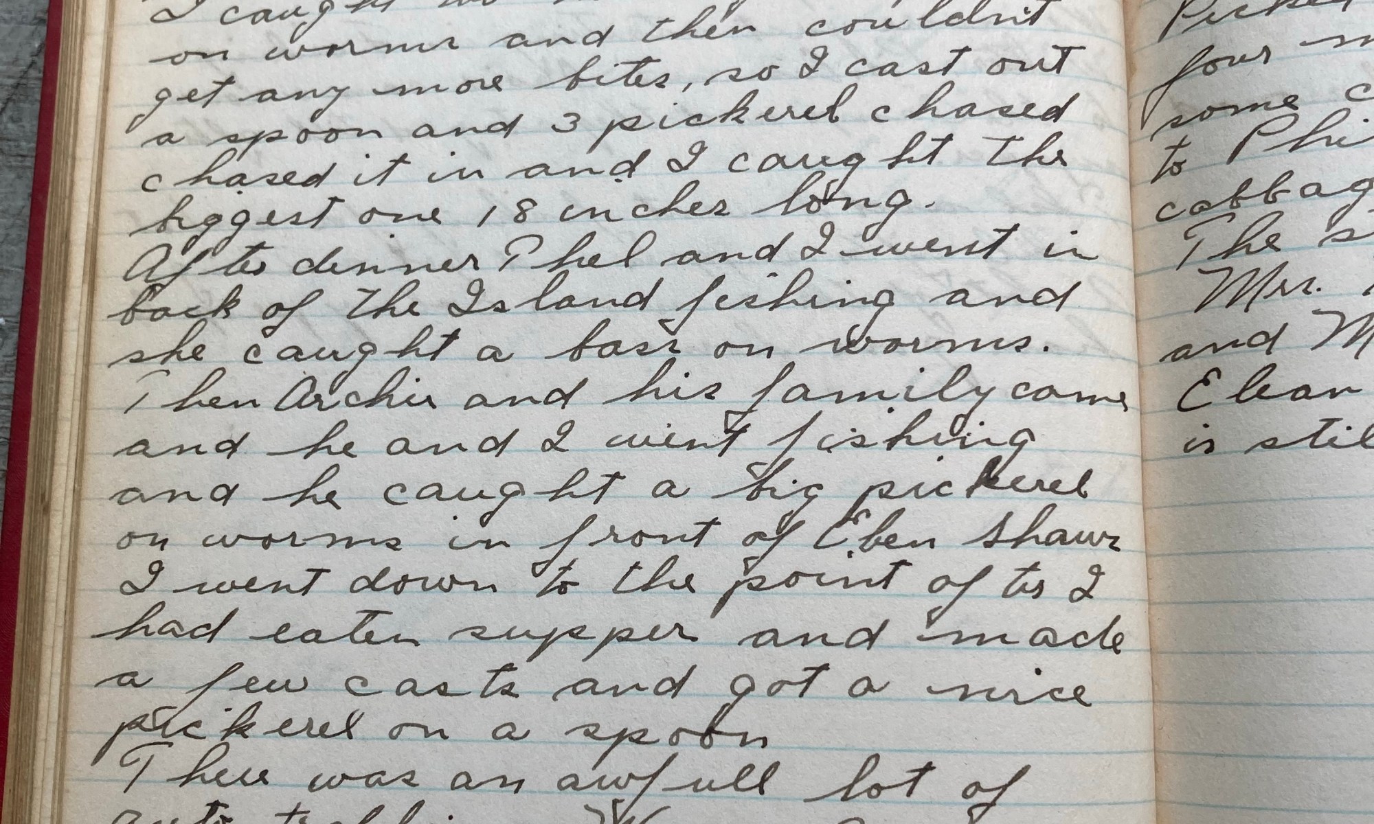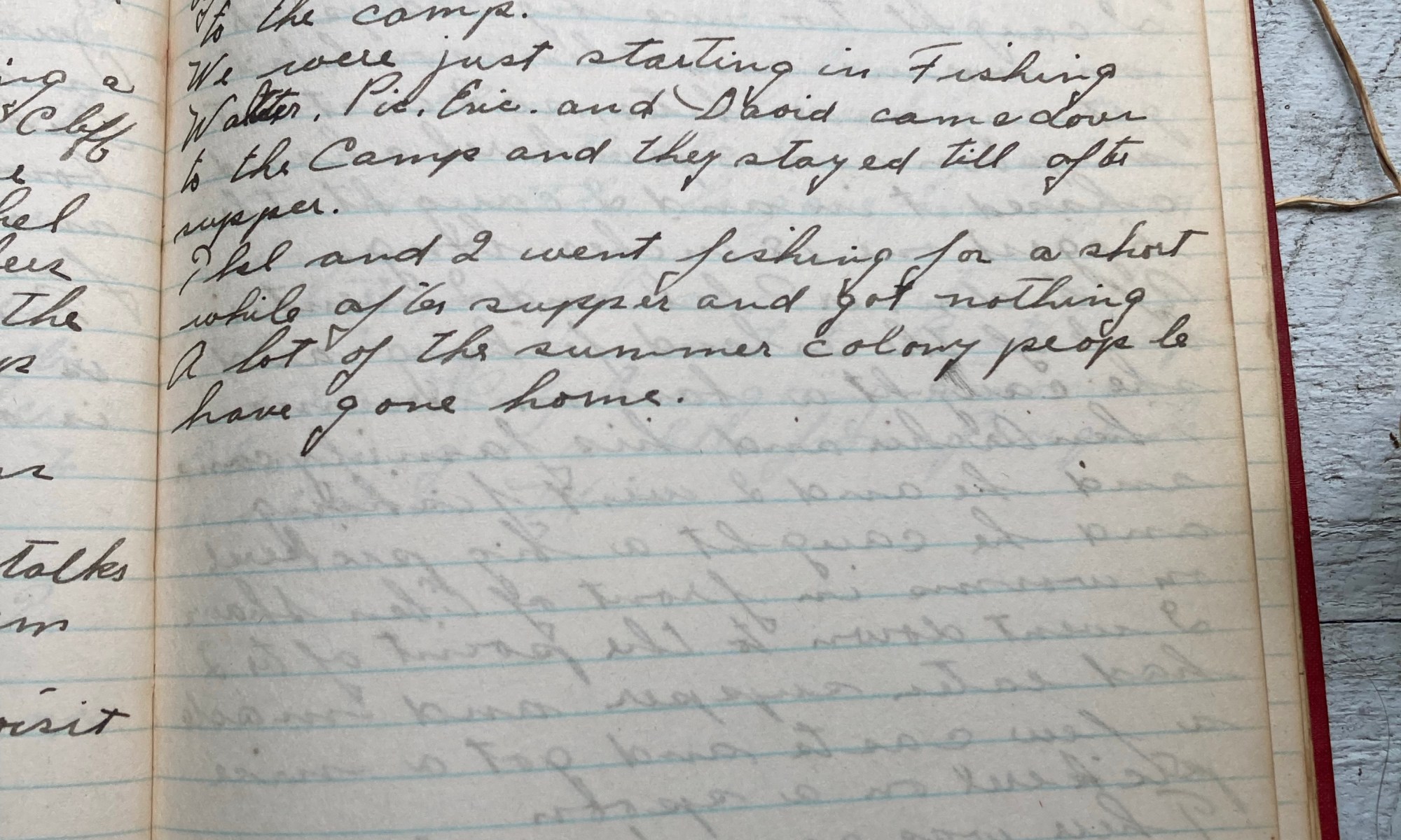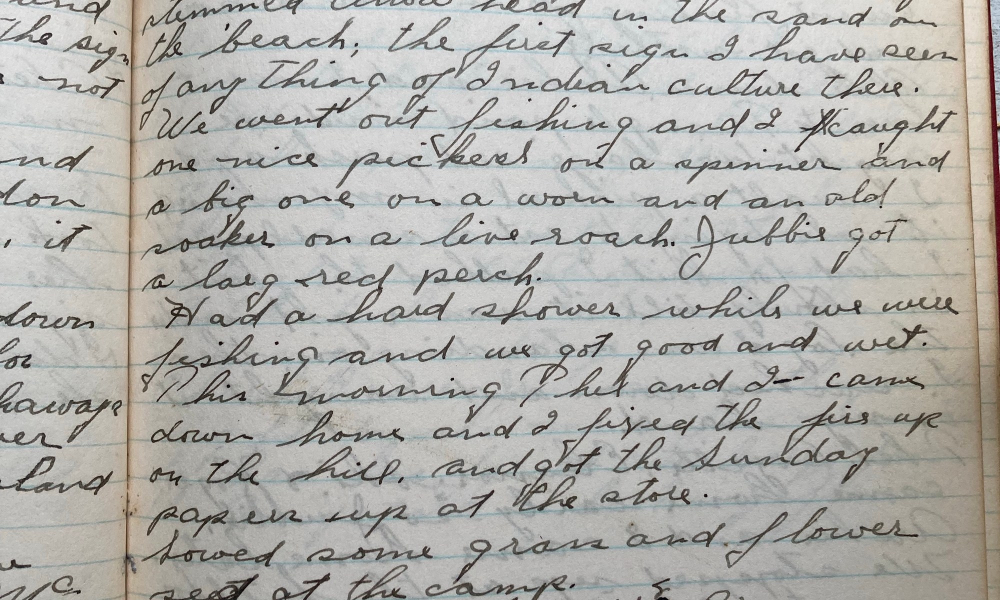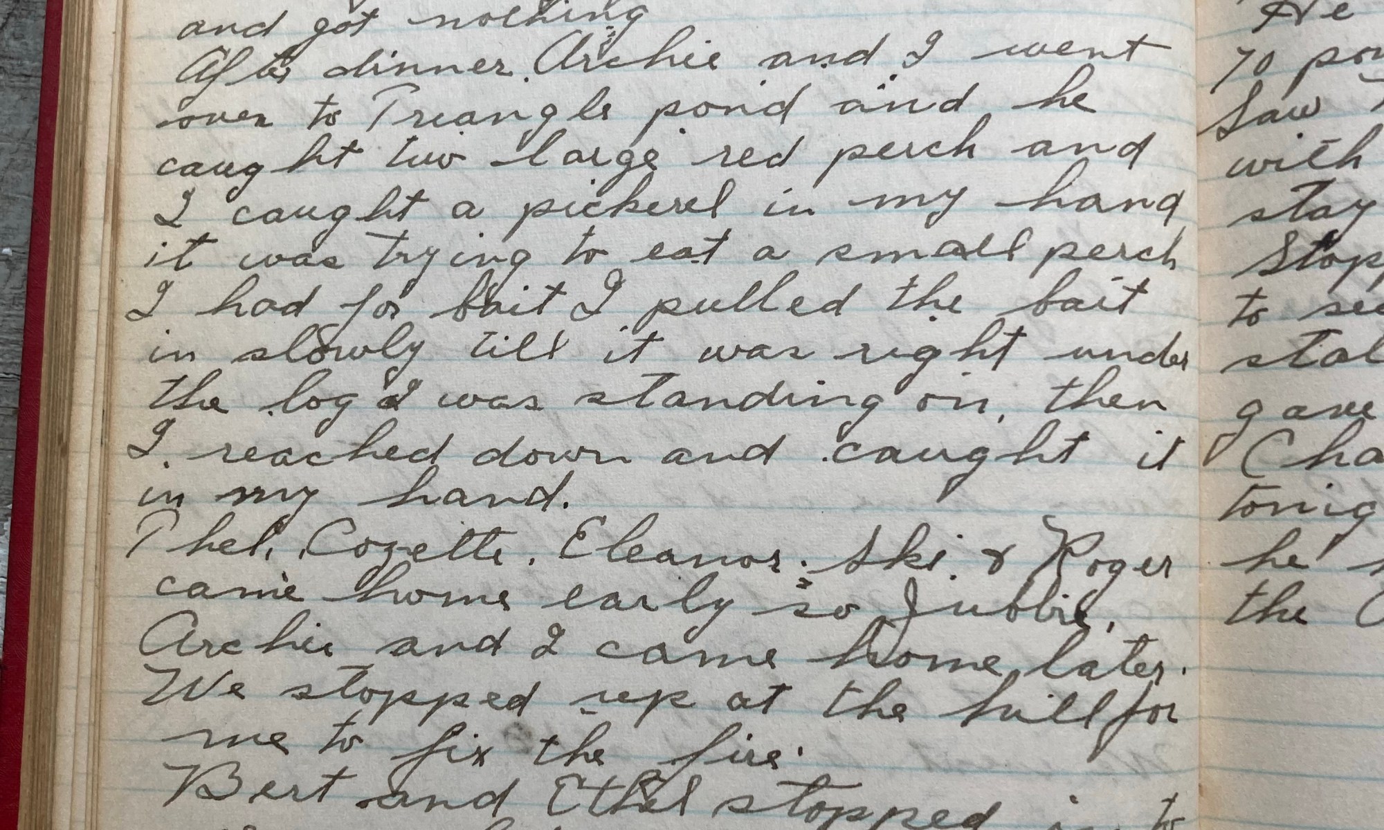 246th day - 119 days to follow Fair and cool. Thel and I came home early by the AM and we stopped on the hill and I fixed the fire. After I got back to the camp I went fishing for an hour or so and got nothing. After dinner Archie and I went over …