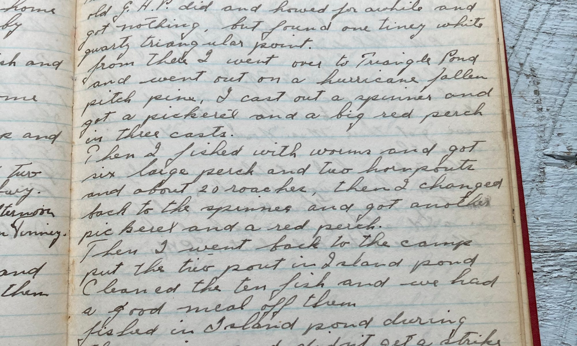 235th day - 130 days to follow Arrowhead - Fishing Partly cloudy and cooler wind No. This morning I rowed the boat over to the Green Turtle and left it there, then went over to the old GHP did and howed for a while and got nothing. But found one tiny white quartz triangular point. …
