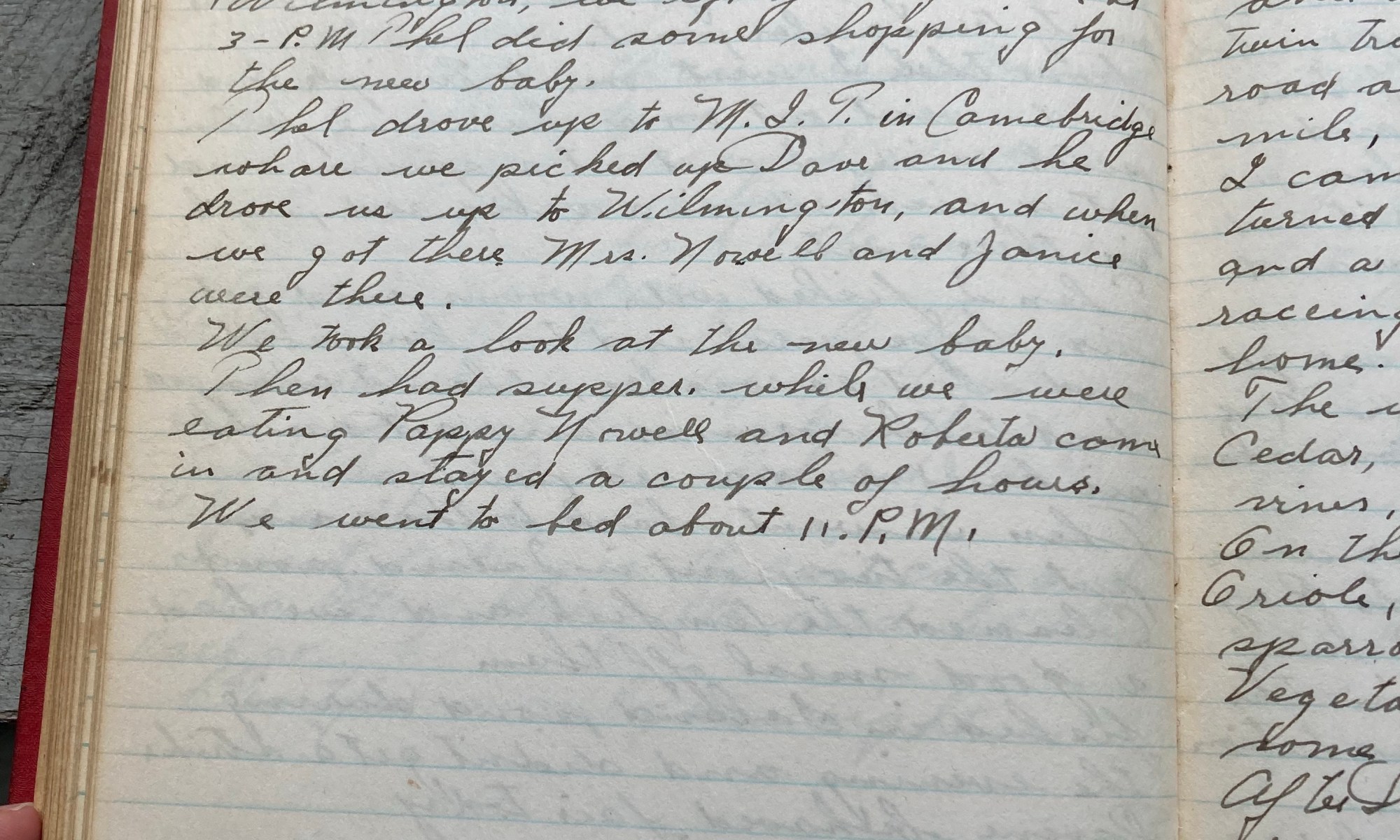 236th day - 129 days to follow Light showers and cool. Plobieced up the camp and came home, got home at 11 AM. After dinner we got ready for our trip to Wilmington, we left for Plymouth at 3 PM. Thel did some shopping for the new baby. Thel drove up to MIT in Cambridge …
