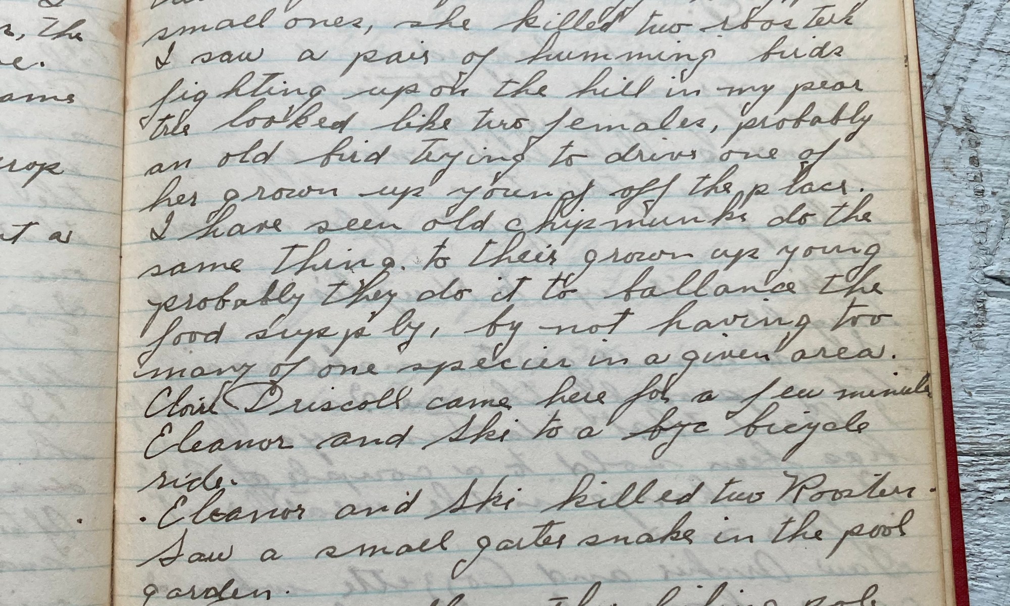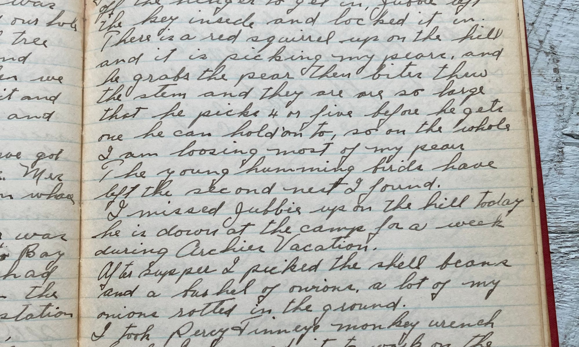 241st day - 124 days to follow Temp 93 Fair and hot. The temp went up to 93 today and pretty sticky too. Eleanor got two pullet eggs today, pretty small ones, she killed two roosters. I saw a pair of hummingbird kids fighting up on the hill in my pear tree, looked like two …
