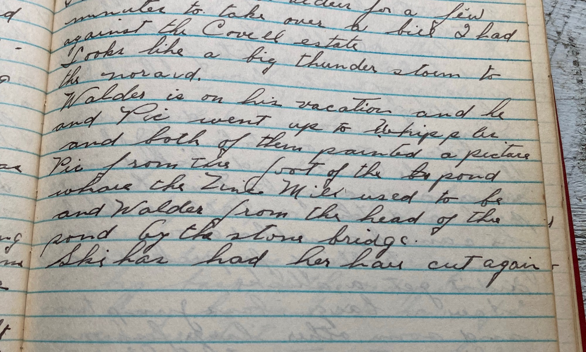 217th day - 148 days to follow Went up on the hill and over to the store and got the paper. When I came back Thel, Ski, Davene and I went down to the pond. Jubbie and I fished most all day and caught a lot of roaches. The Hathaways went home early as they …