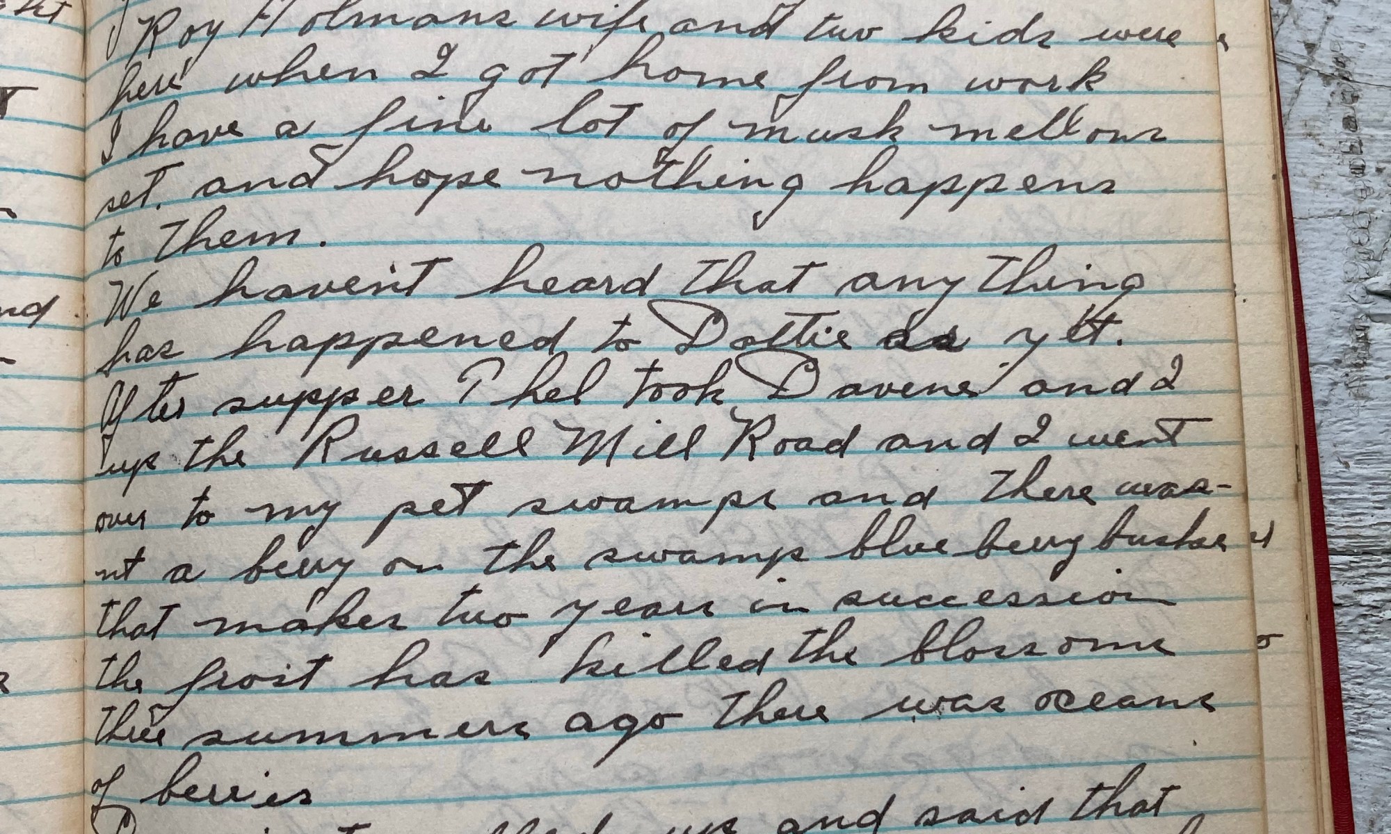 218th day - 147 days to follow Jubbie and I watered this A.M. I cut Hank’s initials H.H. 111 & 45. Started in raining at noon so Jubbie and I cleaned up the house cellar. I had intended to go up to see if there is any swamp blueberries tonight but the woods are too …