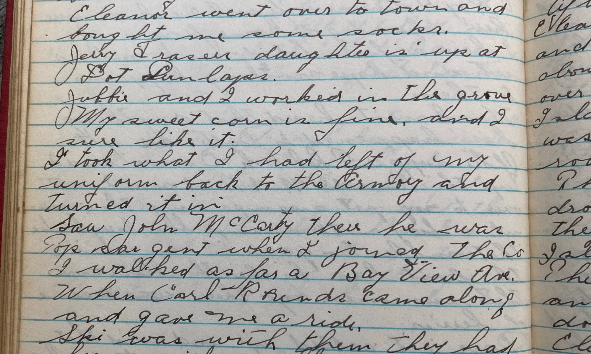 215th day - 150 days to follow Hot and sticky some fog. Jubbie and I worked up around the house trimming all day. Eddie went back to camp Devens tonight, the Hathaways drove him all the way there. I went over to Walders for a few minutes to take over a bill I had against …