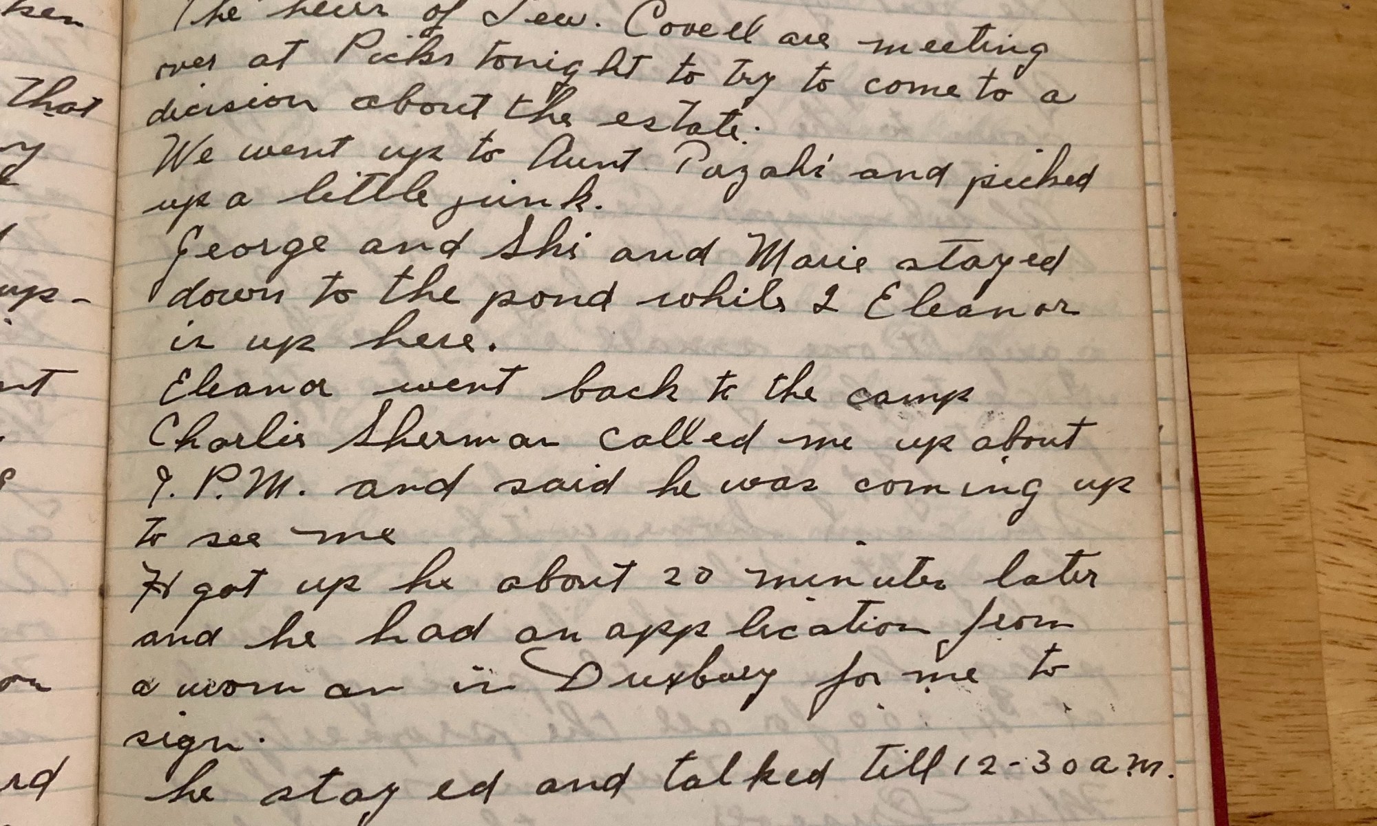 205th day - 160 days to follow Charlie Sherman Fair and comfortable wind east. Jubbie and I worked in the grove all day and it is really beginning to look good. Mrs Morton caught a good striped bass this afternoon. The heirs of Lew Covell are meeting over at Picks tonight to try to come …