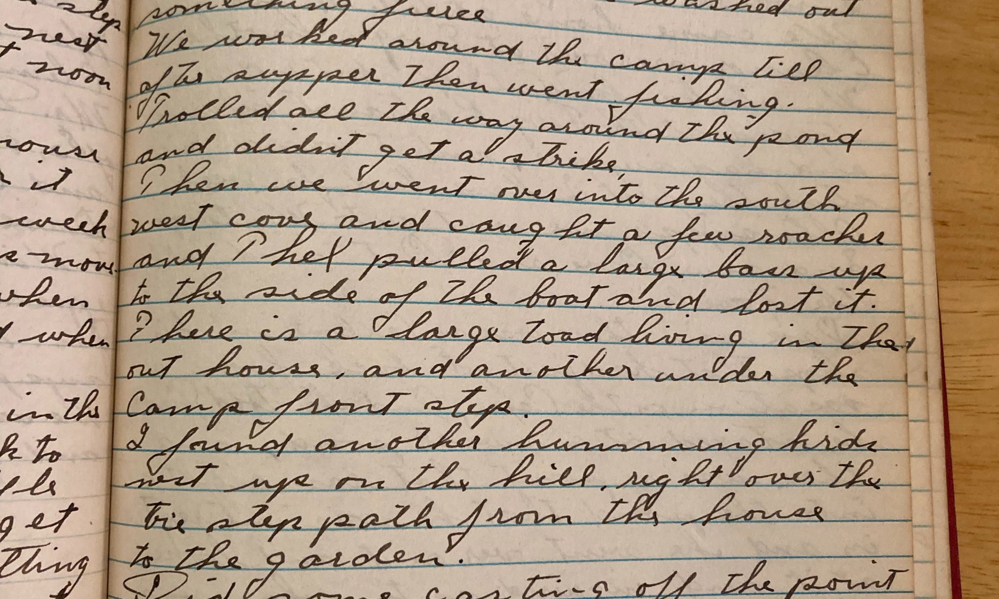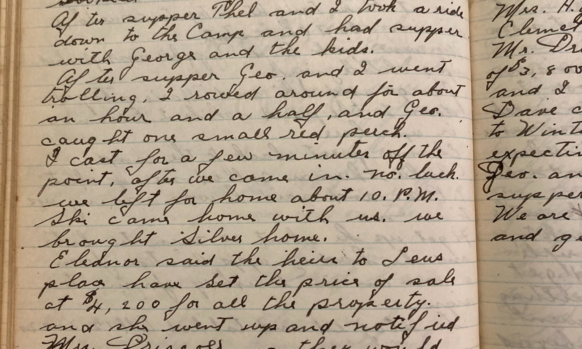 210th day - 155 days to follow Showers this AM, saw Eben Shaw. Did some more casting early after breakfast I went over to the Cove and caught four Crappies and 2 roaches. Then fished for Bass, no go. We came home at 1 PM. Geo and Eleanor are over at George’s mothers. We started …