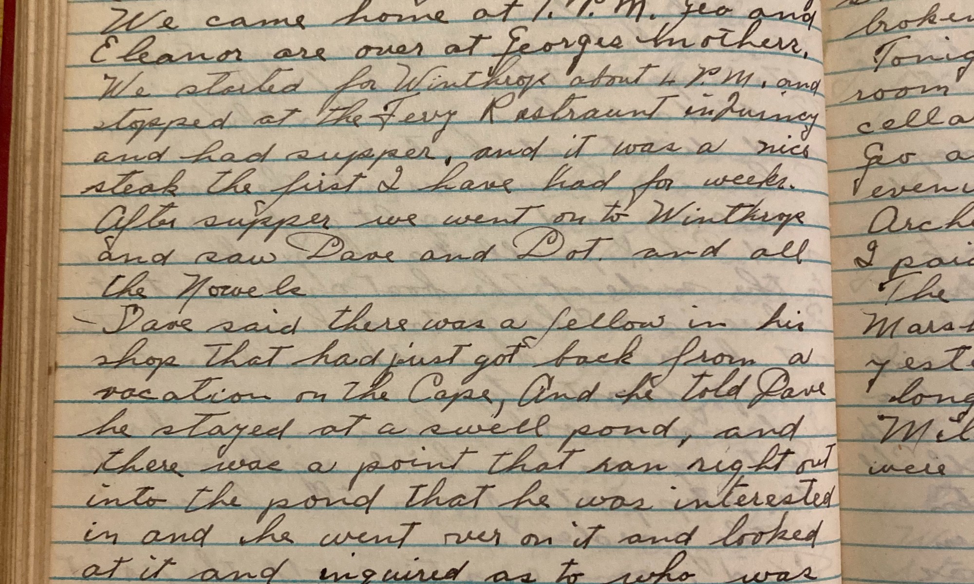 203rd day - 162 days to follow Grandma Crowell Thel and Lottie went down home to get Ski. Bill and I took a walk over to the river that runs out of Halfway Pond, he showed me the site of an old stove factory and the dike that used to hold the water back for …