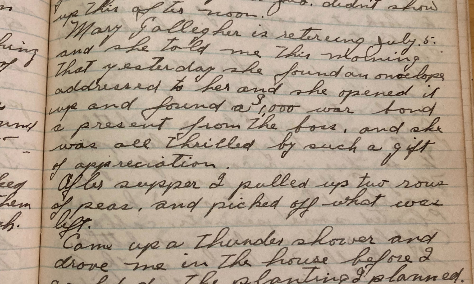 192nd day - 173 days to follow Temp 74 Mary Gallagher Cooler and fair, wind west. Mary Gallagher left the job in the hill this afternoon, she has retired after 26 ½ years on the same job. Jordan Marsh delivered the sand for Hank’s sand box. Bill Whiting was up on the hill with a …