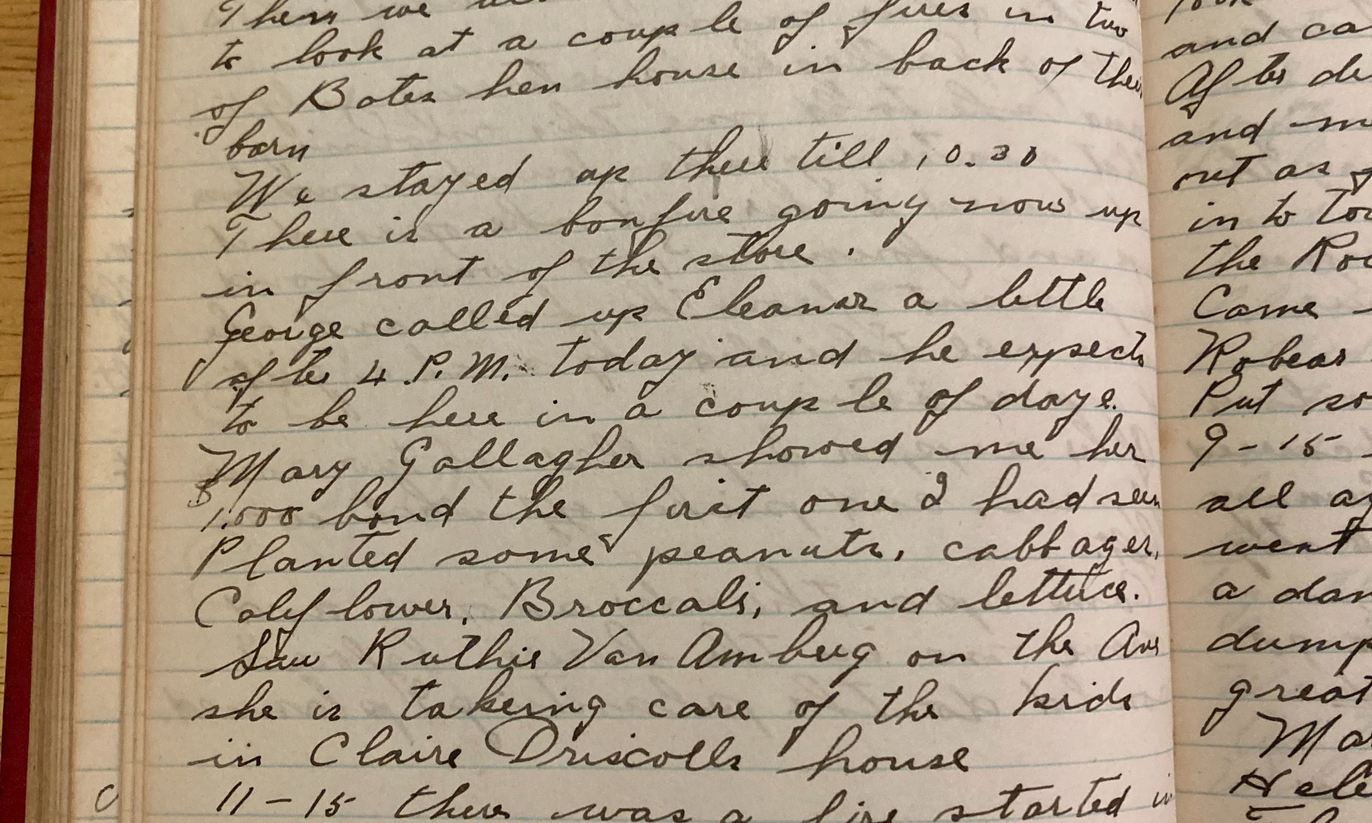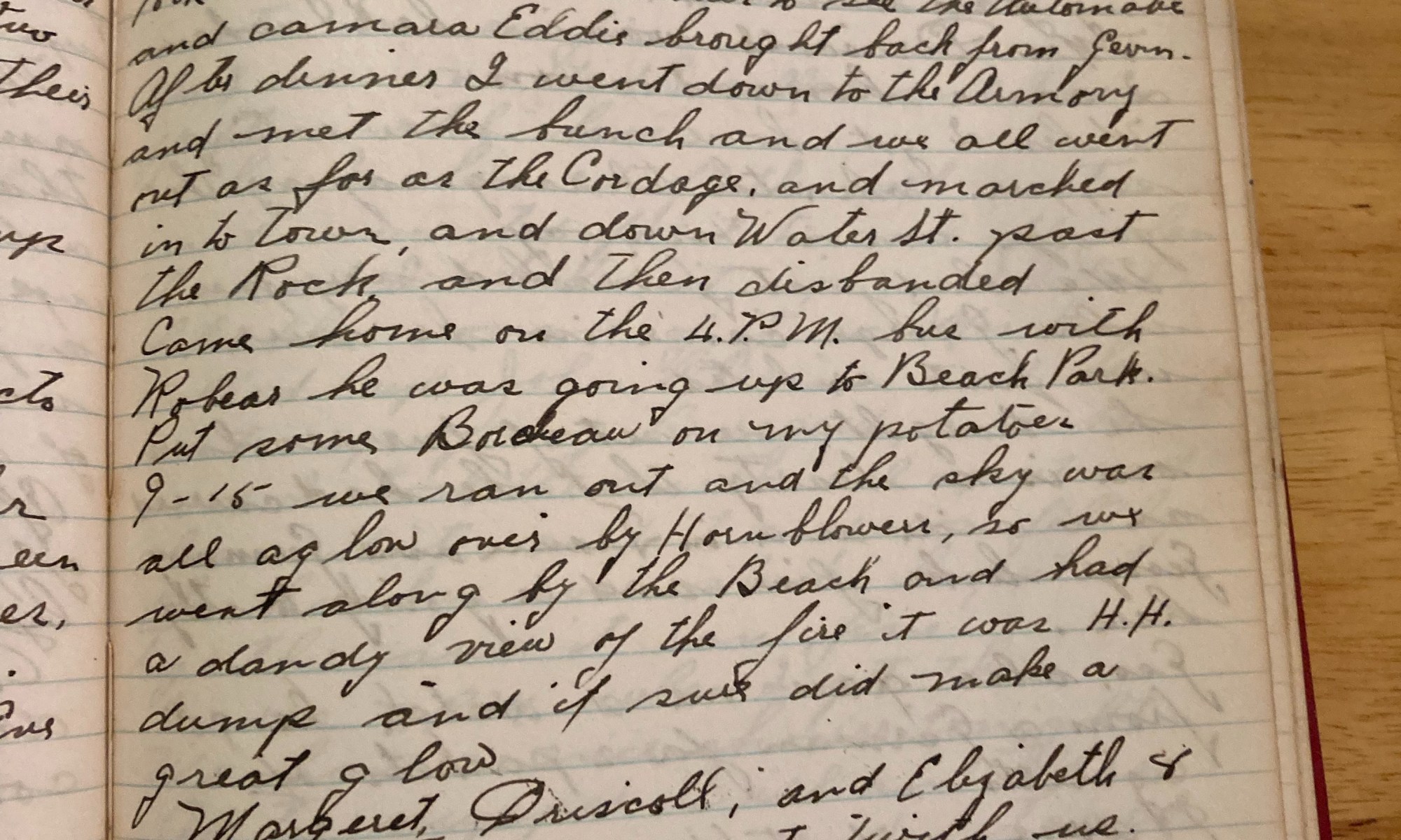 184th day - 181 days to follow Temp 70 Fair and a little cooler, great day. Jubbie and I worked at the foot of the front driveway. After supper I worked in my garden til dark. Then we all went up to the Driscolls to look at a couple of fires in two of Bates …