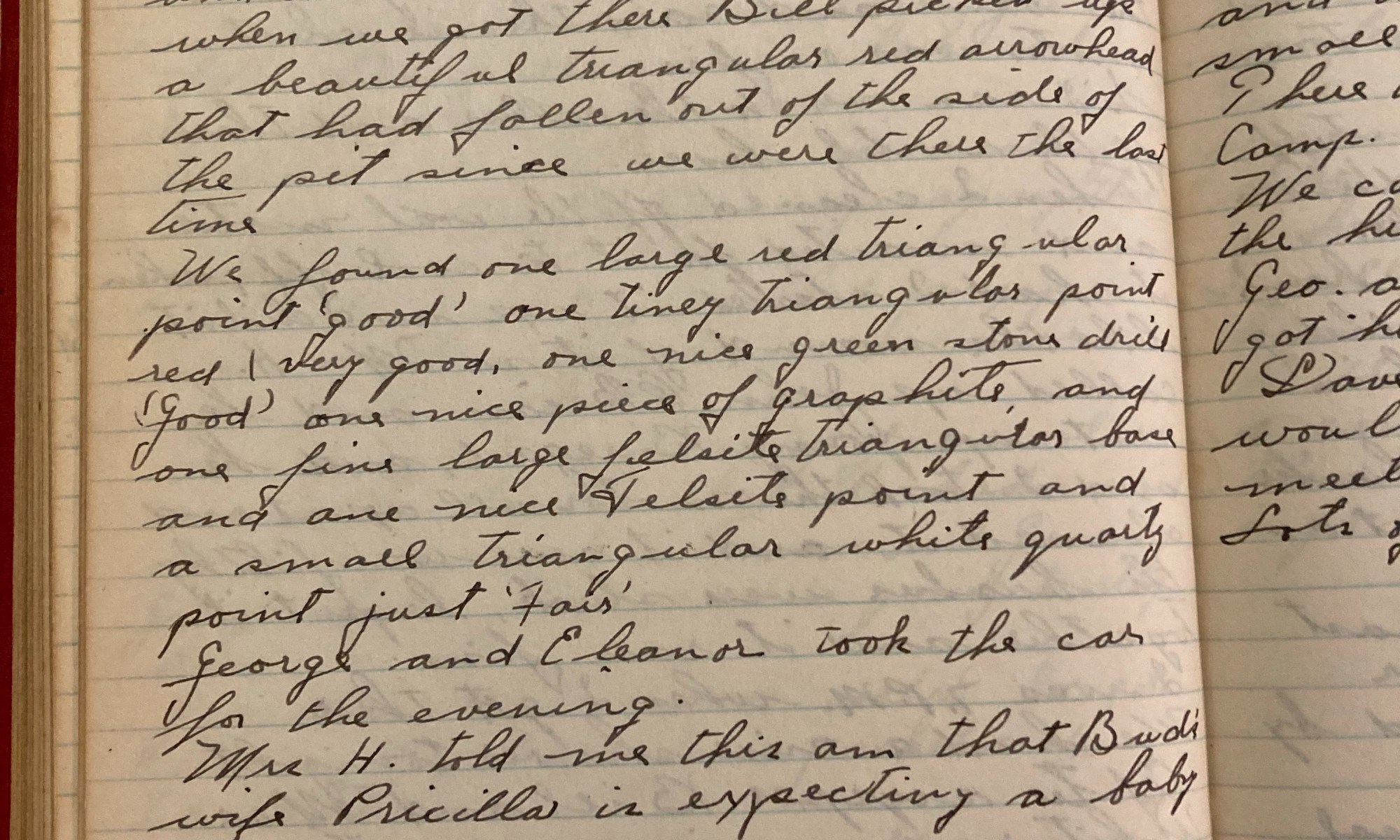 188th day - 177 days to follow Temp 80 Arrowheads Priscilla Fair and cooler. Eddie and his wife were here when I came home at noon. After dinner Bill Whiting came up and he and I went up to the dig, when we got there Bill picked up a beautiful triangular red arrowhead that had …