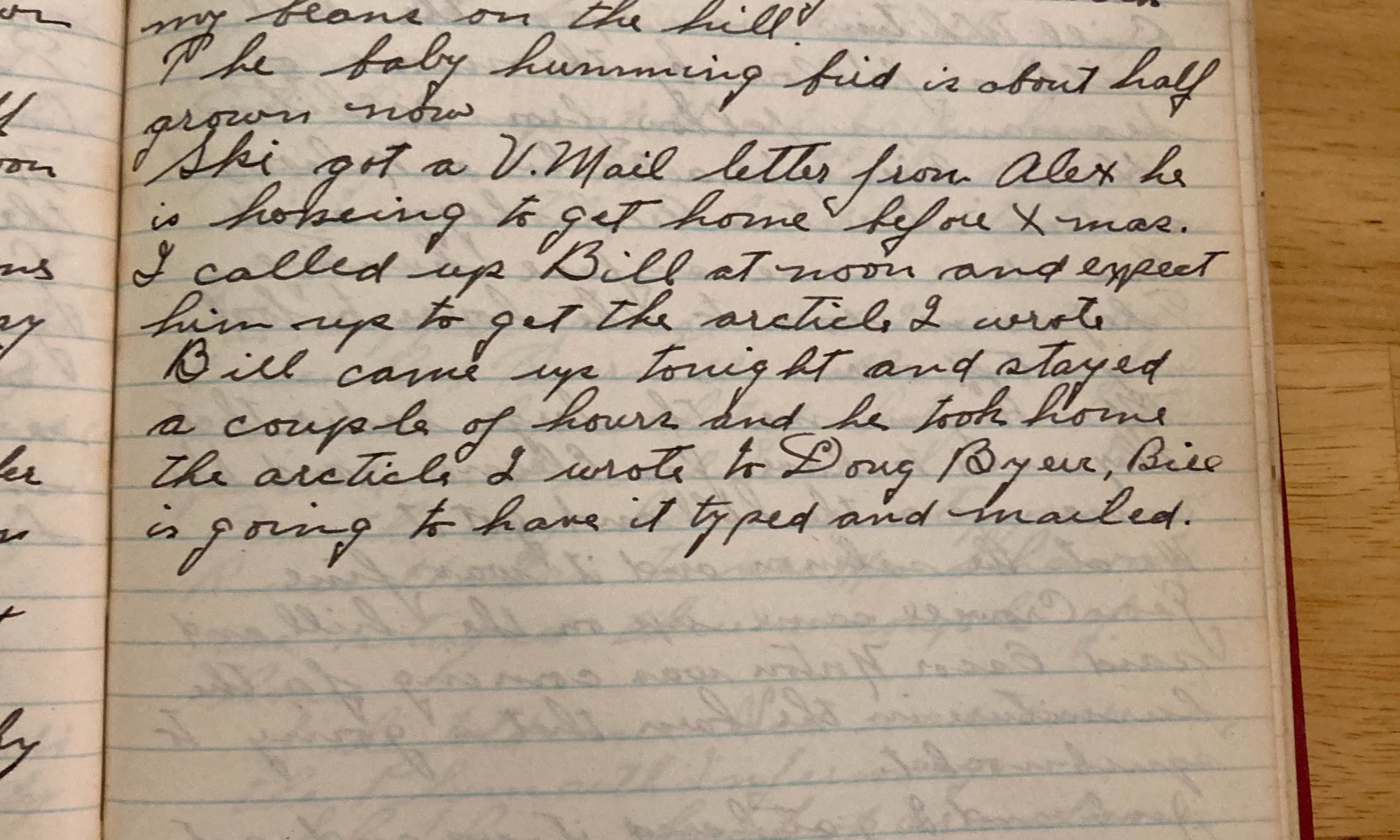 191st day - 174 days to follow Temp 85 Fair and hot. Mowed some more down on the front drive. Mrs H gave me some fresh salmon that the boss sent down from Maine. The rabbits are raiding heck with my beans on the hill. The baby hummingbird is about half grown now. Ski got …