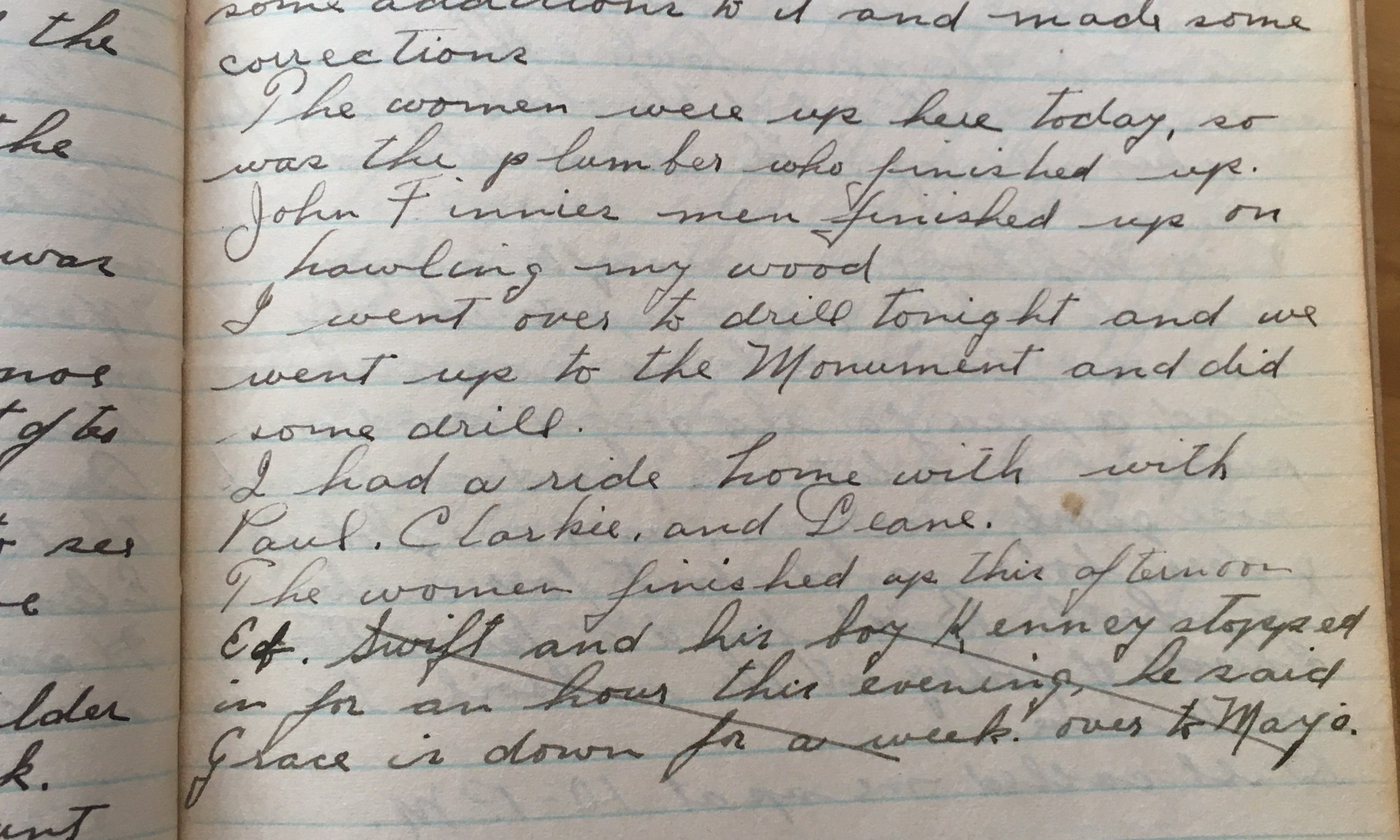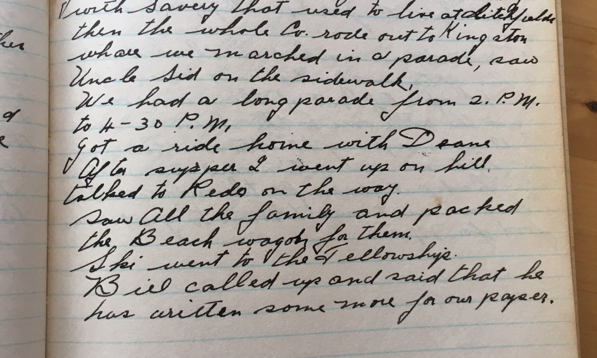 147th day - 218 days to follow Kingston Cloudy and cool. Went up on the hill, saw Mr H and Dimp. Rode over to the store and got the paper. Got a ride at 12-30 as far as the Armory with Savery that used to live at [***] then the whole Co rode out to …