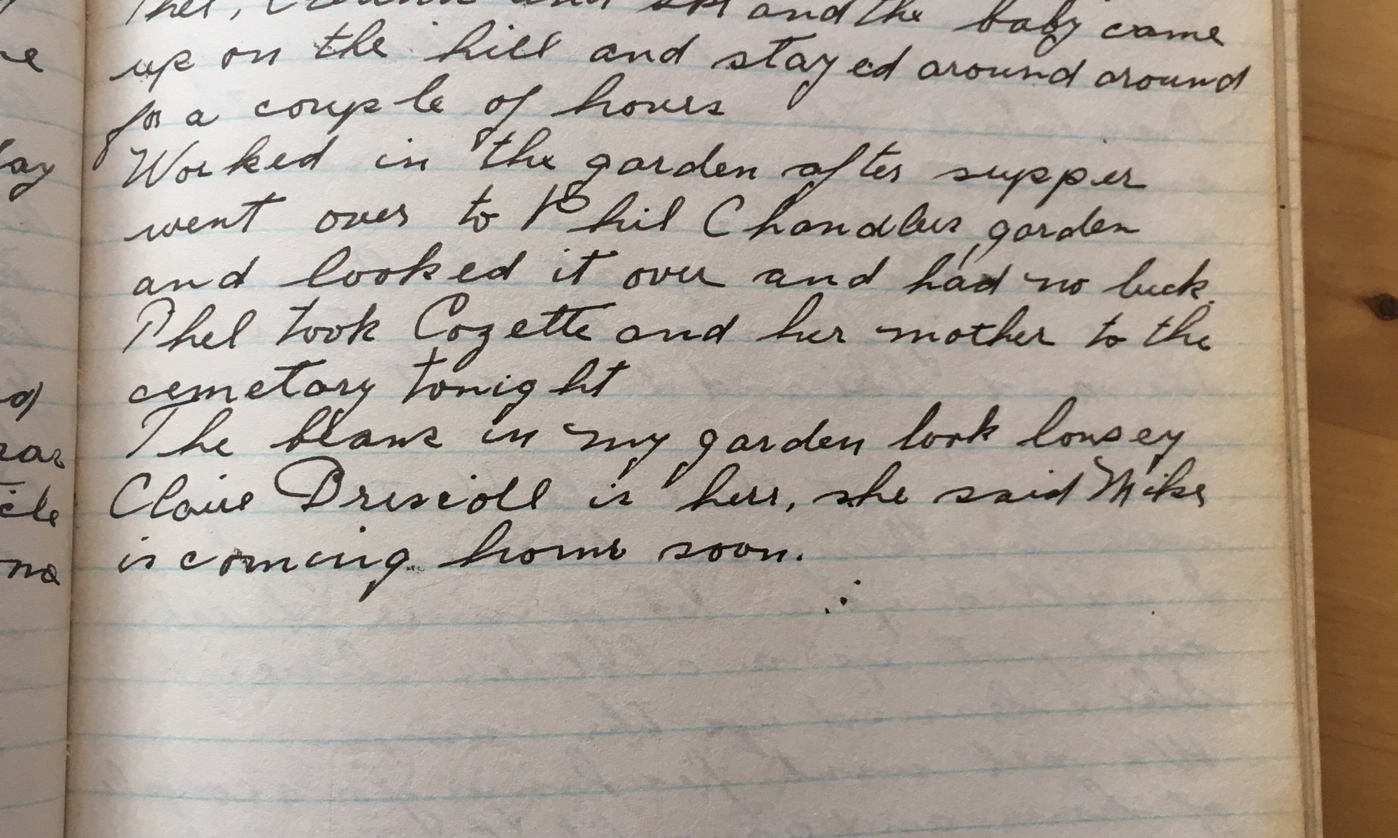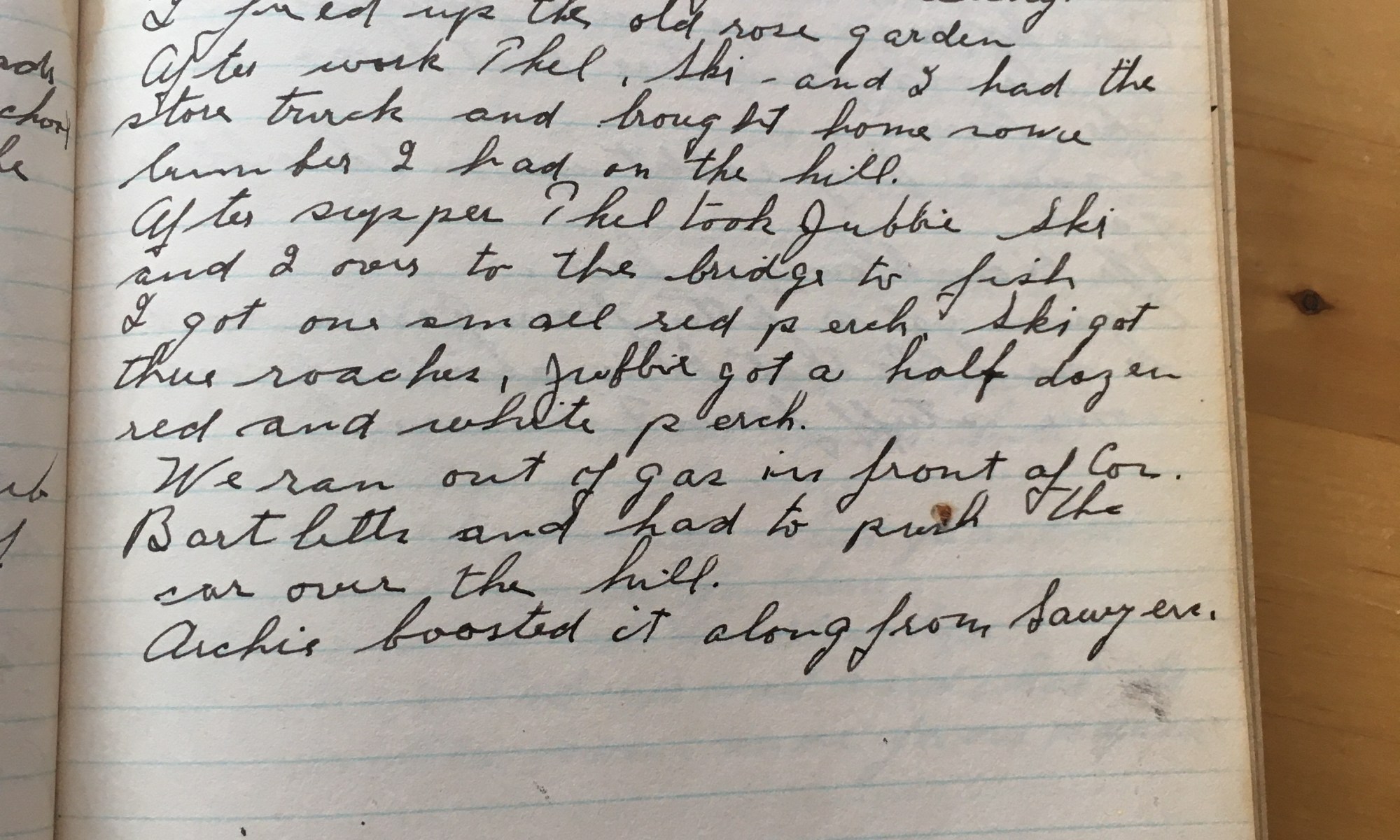 145th day - 220 days to follow Temp 70 Fair and warm wind west. Ralph Malaguti was up this morning and he said he would have his man up Mon or Tues to fix the ceiling. I fixed up the old rose garden. After work, Thel, Ski, and I had the store truck and brought …