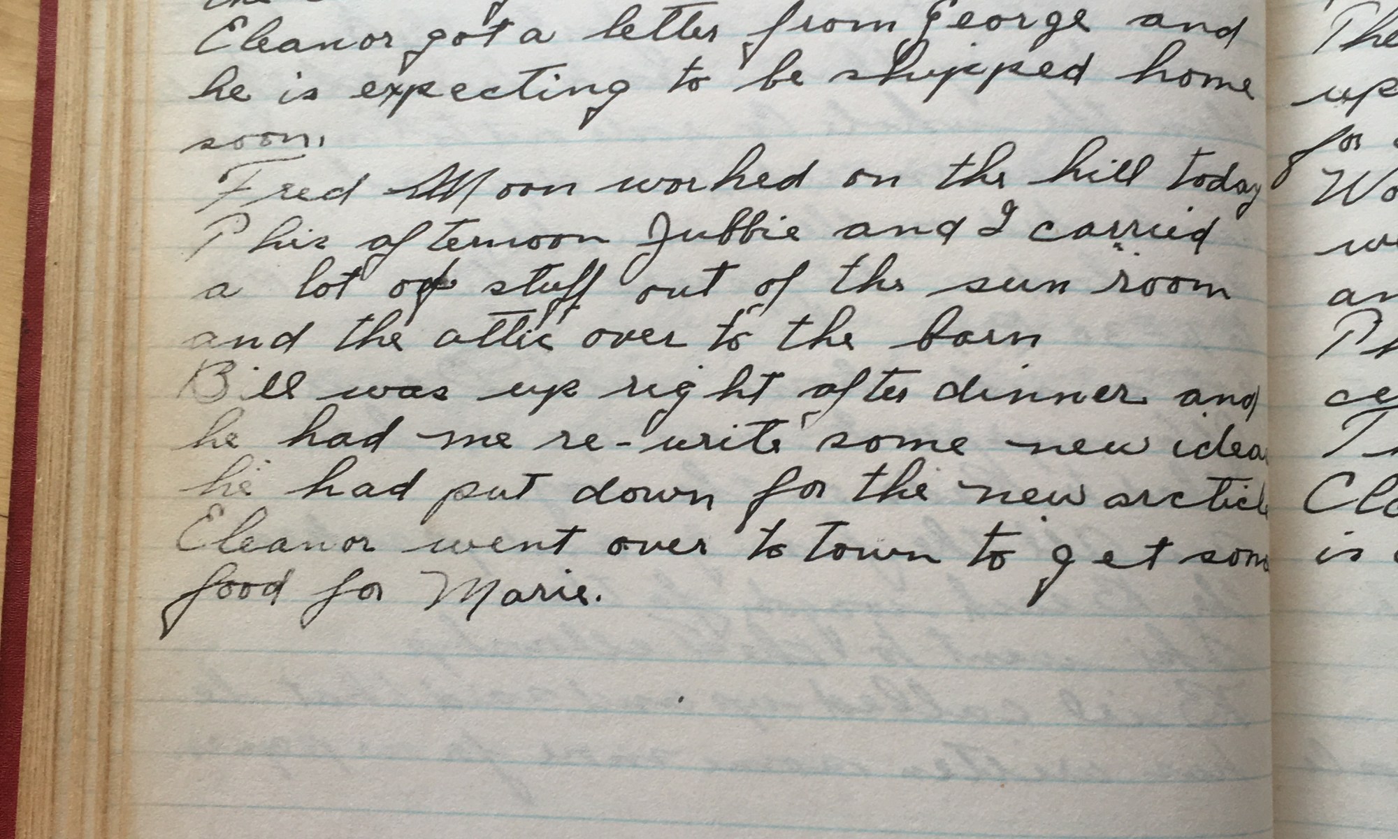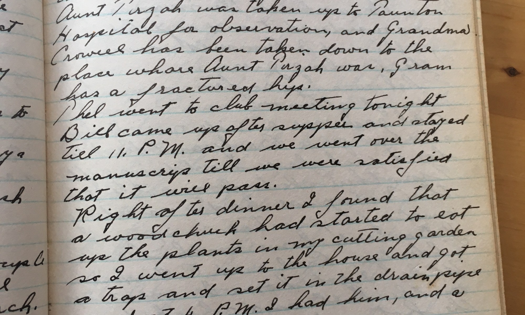 151st day - 214 days to follow Temp 65 Fair and cooler, high west wind. Rus Snow came up this AM and got the window shades. Fred Moon is up on the hill. Bill Whiting came up to go over the manuscript again. Aunt Tirzah was taken up to Taunton Hospital for observation and Grandma …