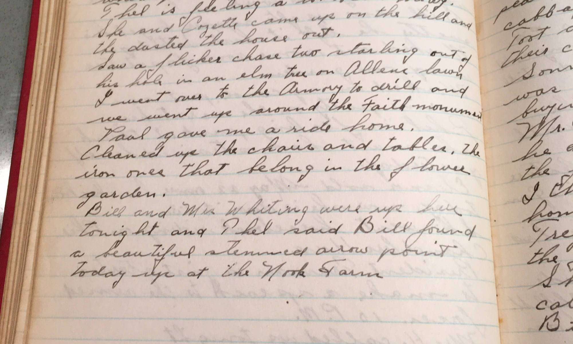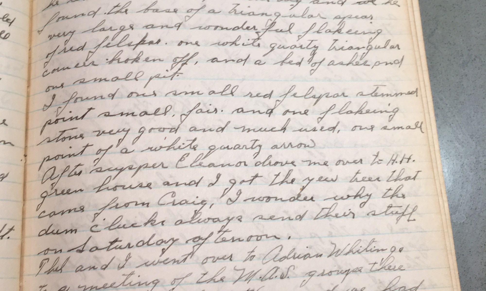 111th day - 254 days to follow Arrowheads Temp 65 Partly cloudy. Fred Moon was painting today Jubbie mowed the lawn and I did some work in the house and painted some lawn furniture. Bill Whiting came up after dinner and he and I went up to the dig and he found the base of …