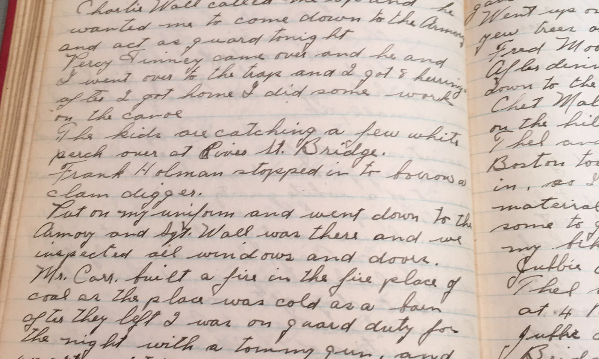 112th day - 253 days to follow Guarded Armory Temp 58 Cold NW Wind Charlie Sherman called me up this morning and said it was Mr Metcalf of New Bedford that found the of copper and woven cloth. Charlie Wall called me up and he wanted me to come down to the Armory and act …