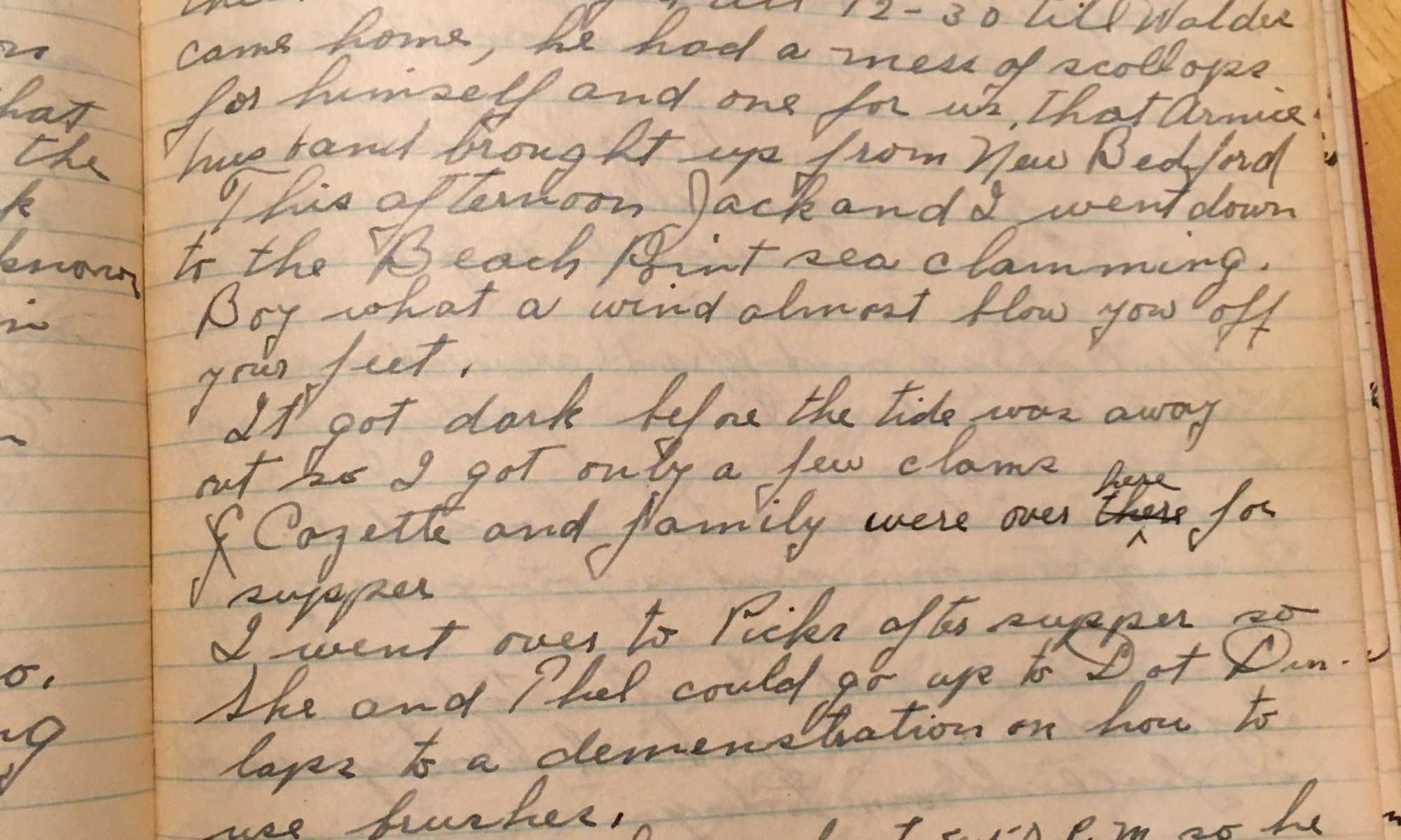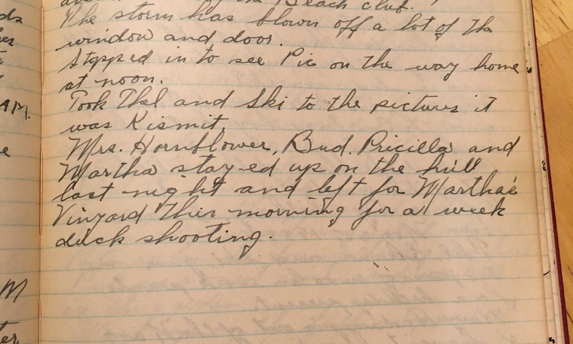 329th day - 37 days follow Worked most all day wood chopping on the front drive, had to quit about 3-30 on account of snow squalls. Took a walk along the beach tonight and home by the Beach Club. The storm has blown off a lot of the window and door. Stopped in to see …
