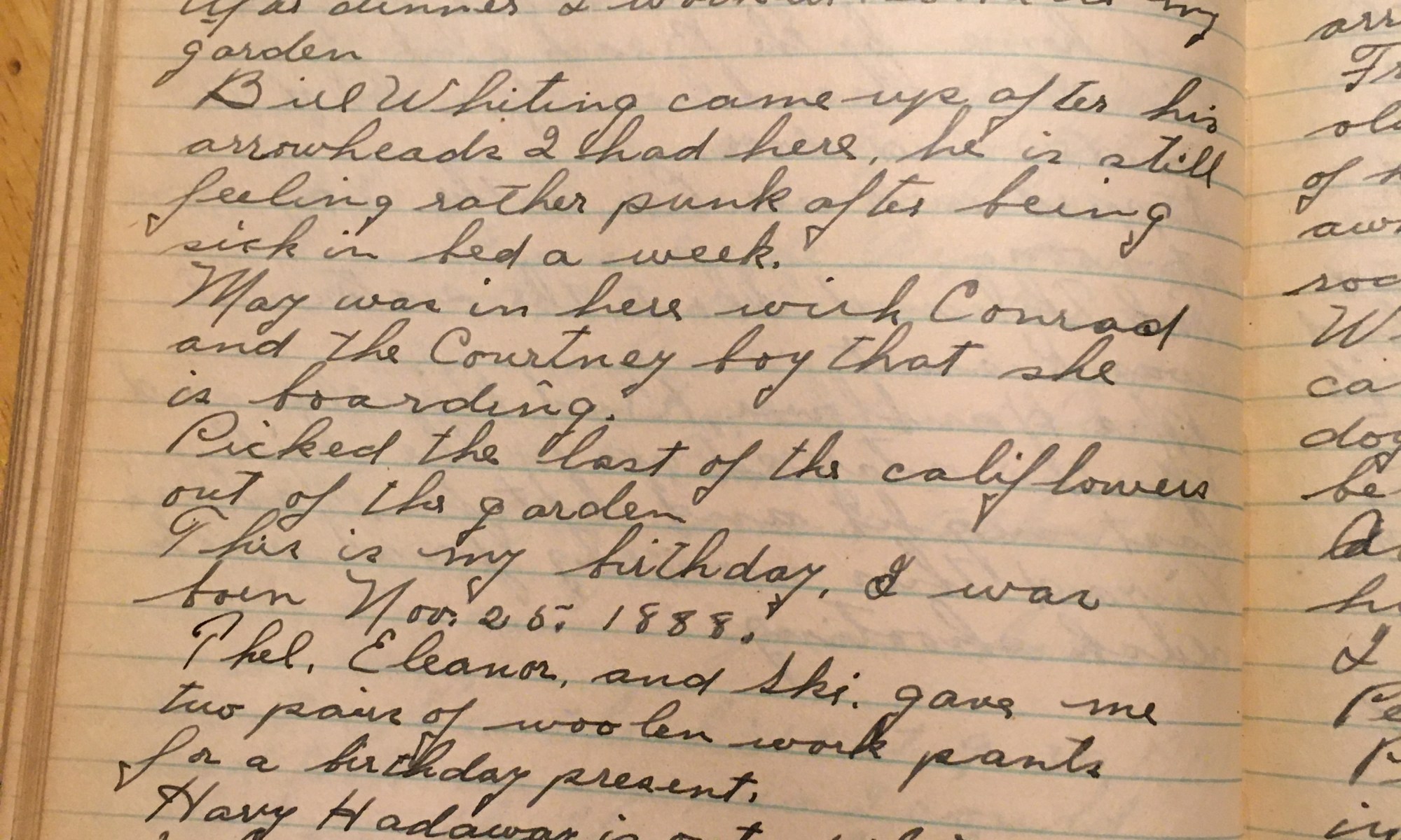 337th day - 29 days follow Arrowheads When I got up on the hill Mr. H and Geo Crowell were there, the rest had gone up to Boston. There were three blue birds this morning on the bird house in my yard. Carted out logs and brush this A.M. Bill came up after dinner and …