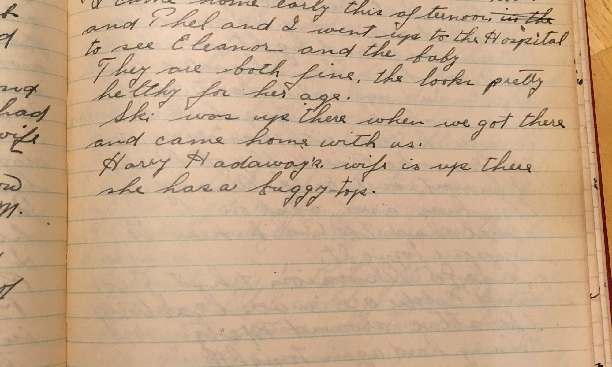 333rd day - 33 days follow Caught another mouse in Mrs. H’s closet. Thel went up to the hospital and saw Eleanor and her baby, they are both fine. Grandma Holman was in here at noon. I came home early this afternoon and Thel and I went up to the hospital to see Ealanor and …
