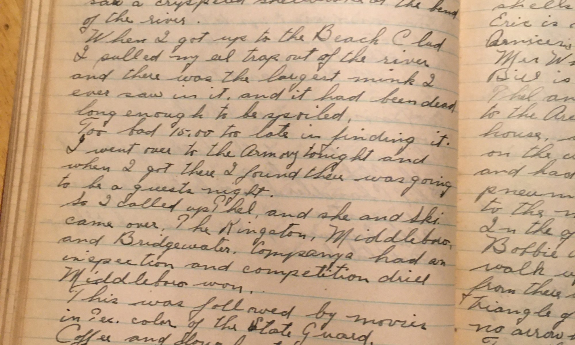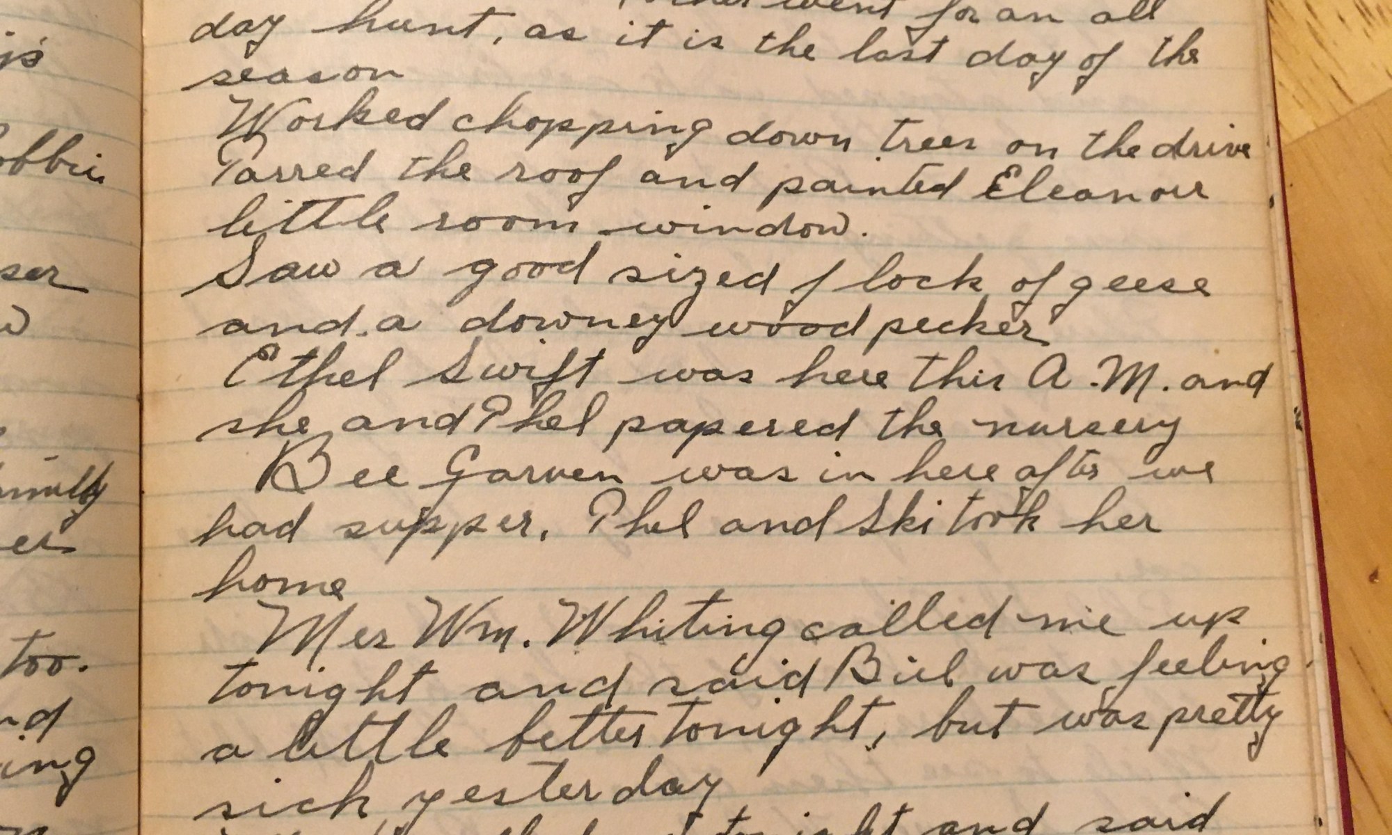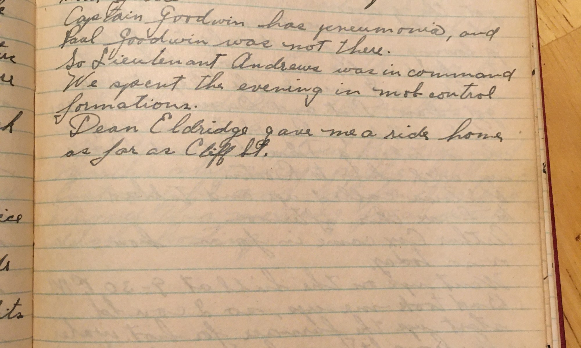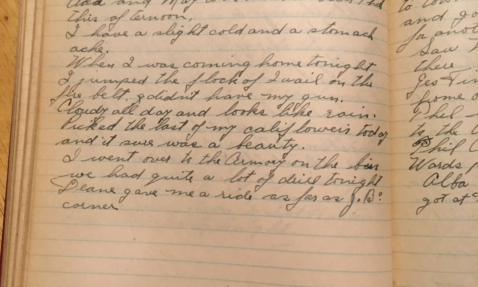 327th day - 39 days follow Rained hard all day, took a walk up along the river and found two dead ducks but the crows had spoiled them. Got a ride over to the armory with Tillie and Jubbie. Captain Goodwin has pneumonia and Paul Goodwin was not there. So Lieutenant Andrews was in command. …