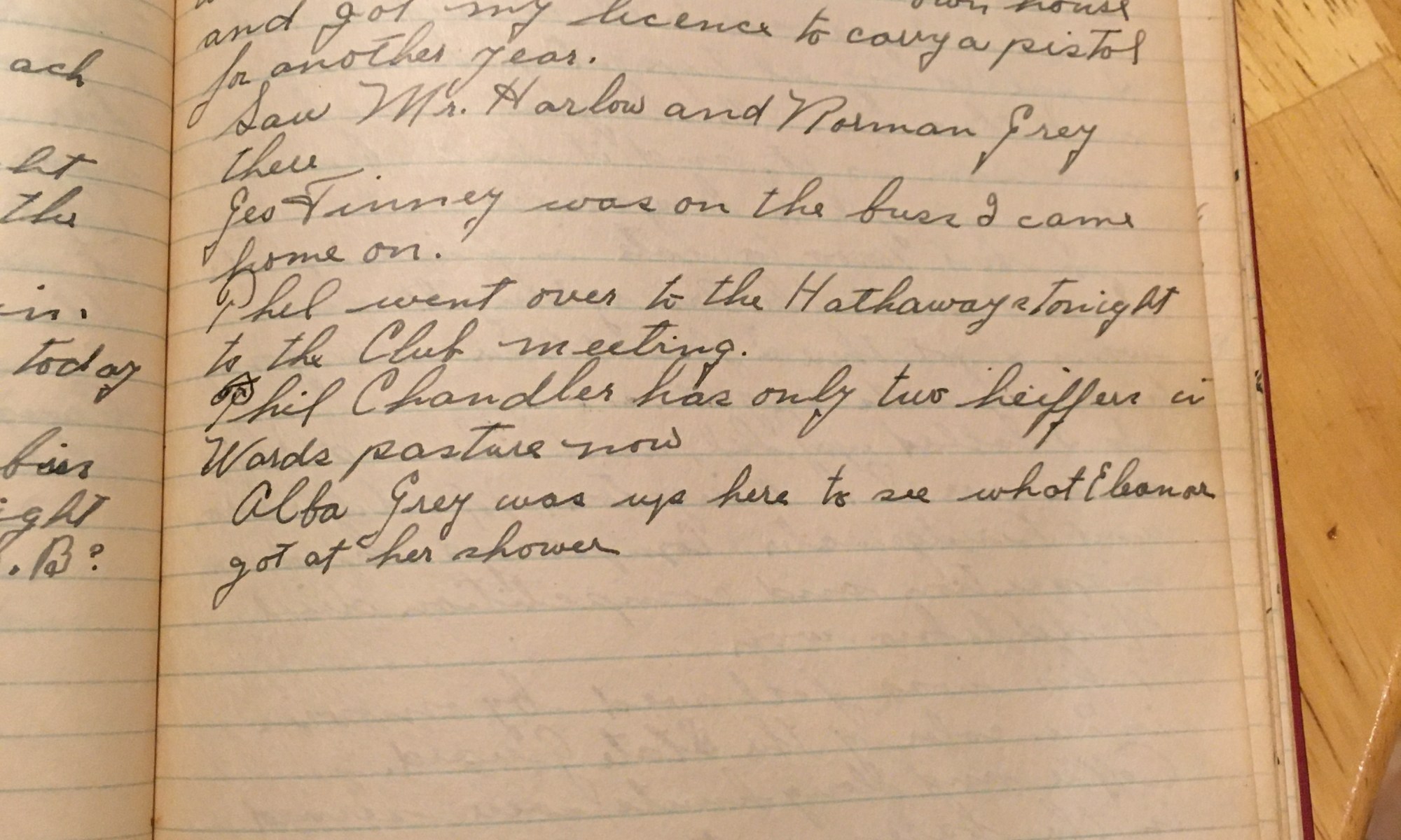 321st day - 45 days follow Cold and rain all day today. Worked in the cellar on the wood pile and the door and windows. After dinner I took the 2 P.M. bus over to town and went up to the Town house and got my license to carry a pistol for another year. Saw …