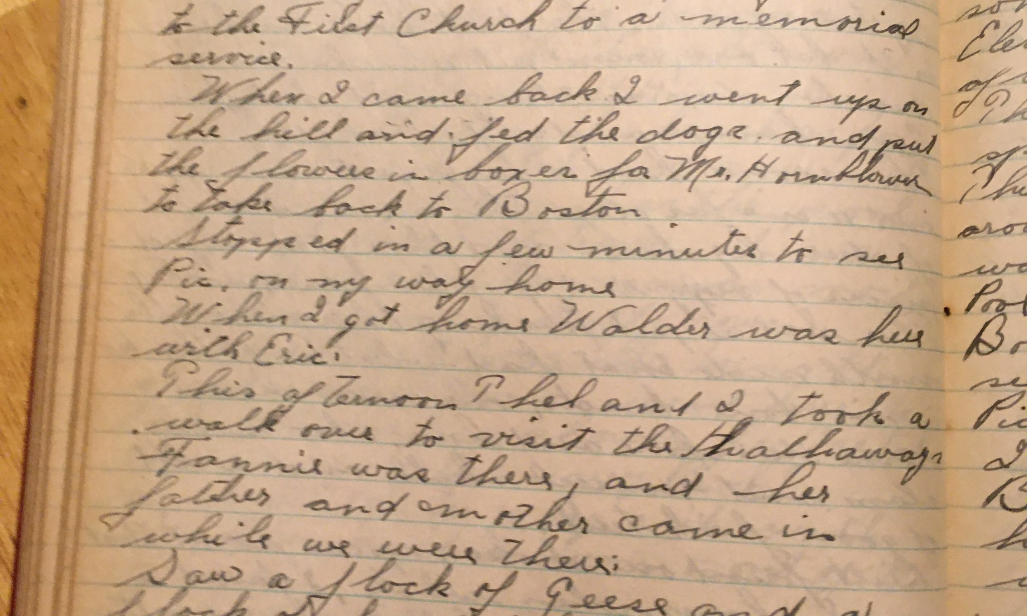 310th day - 56 days follow This morning Thel took me over to the Armory and the company went to the First Church to a memorial service. When I came back I went up on the hill and fed the dogs and put the flowers in boxes for Mr Hornblower to take back to Boston. …
