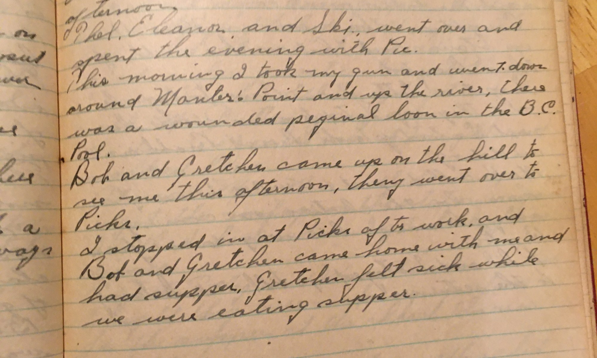 311th day - 55 days follow Cold rain. I went over to the store to get some dog food. Eleanor and Ski went over to town this afternoon Thel, Eleanor, and Ski went over and spent the evening with Pic. This morning I took my gun and went down around Manter’s Point and up the …