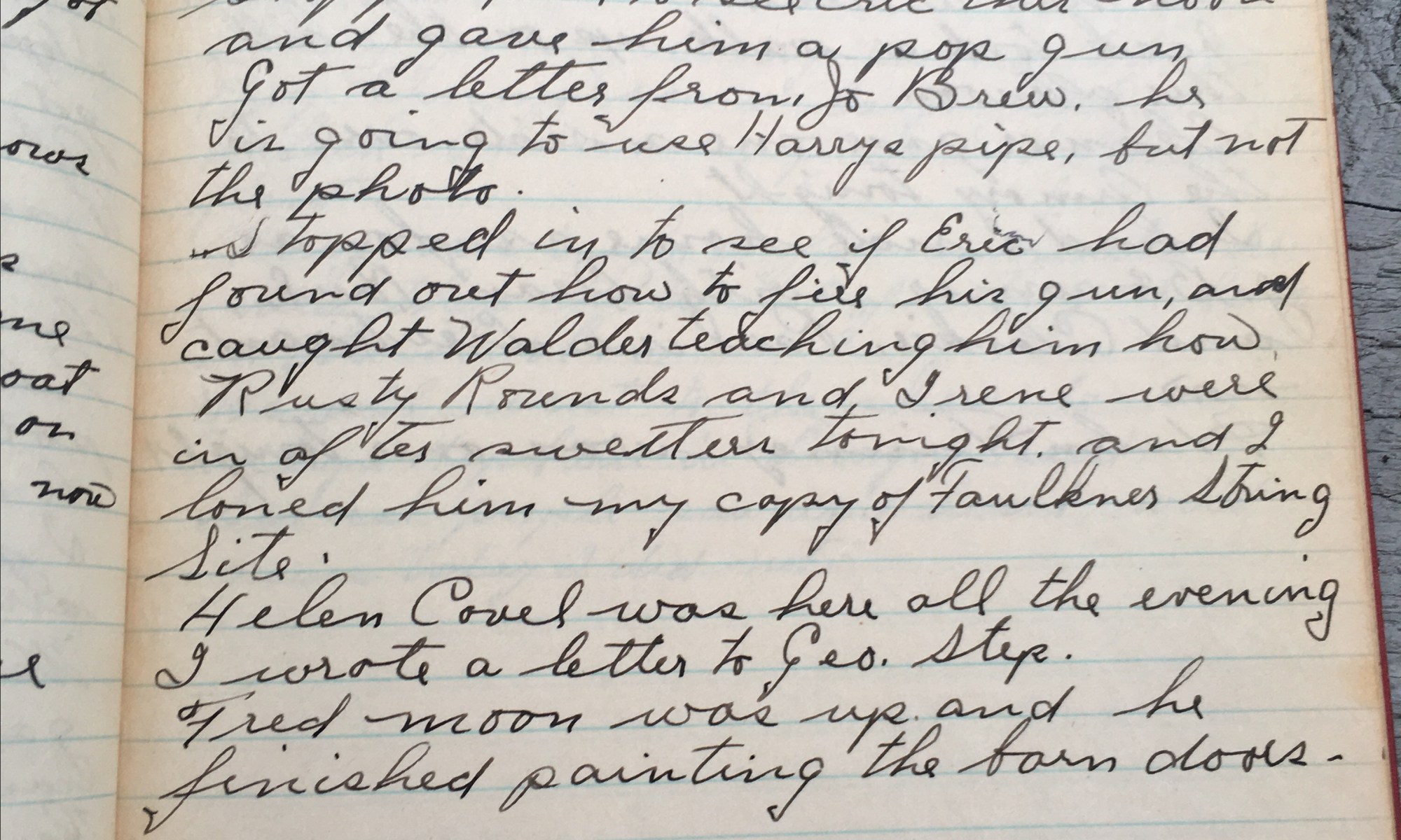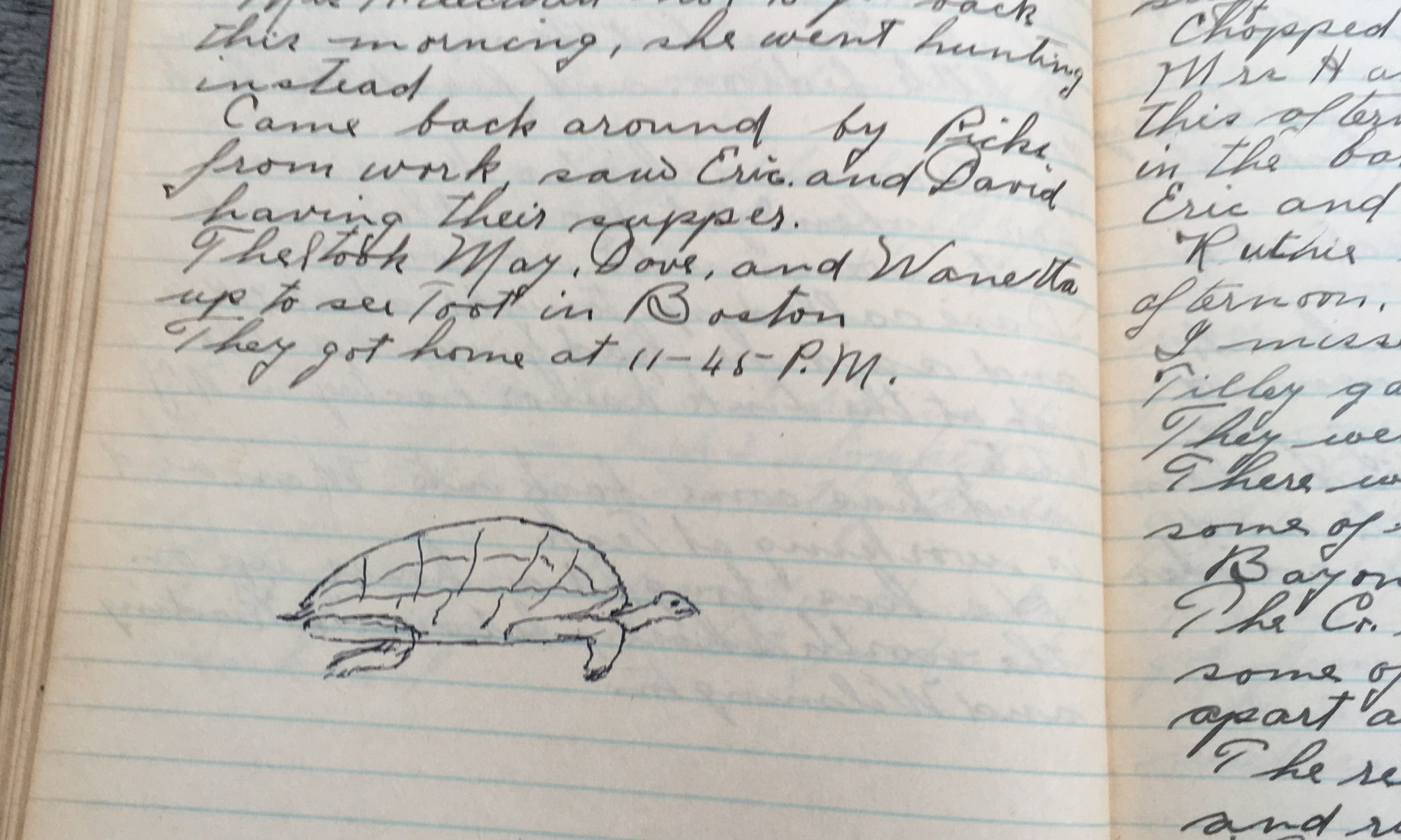 299th day - 67 days follow Fair and warm wind So. Finney’s truck came up and got the stuff to take back to Boston. Chopped kindling behind the barn. Mrs H and the two girls left for Boston this afternoon. She left the two dogs in the barn cellar. Eric and David were over there …